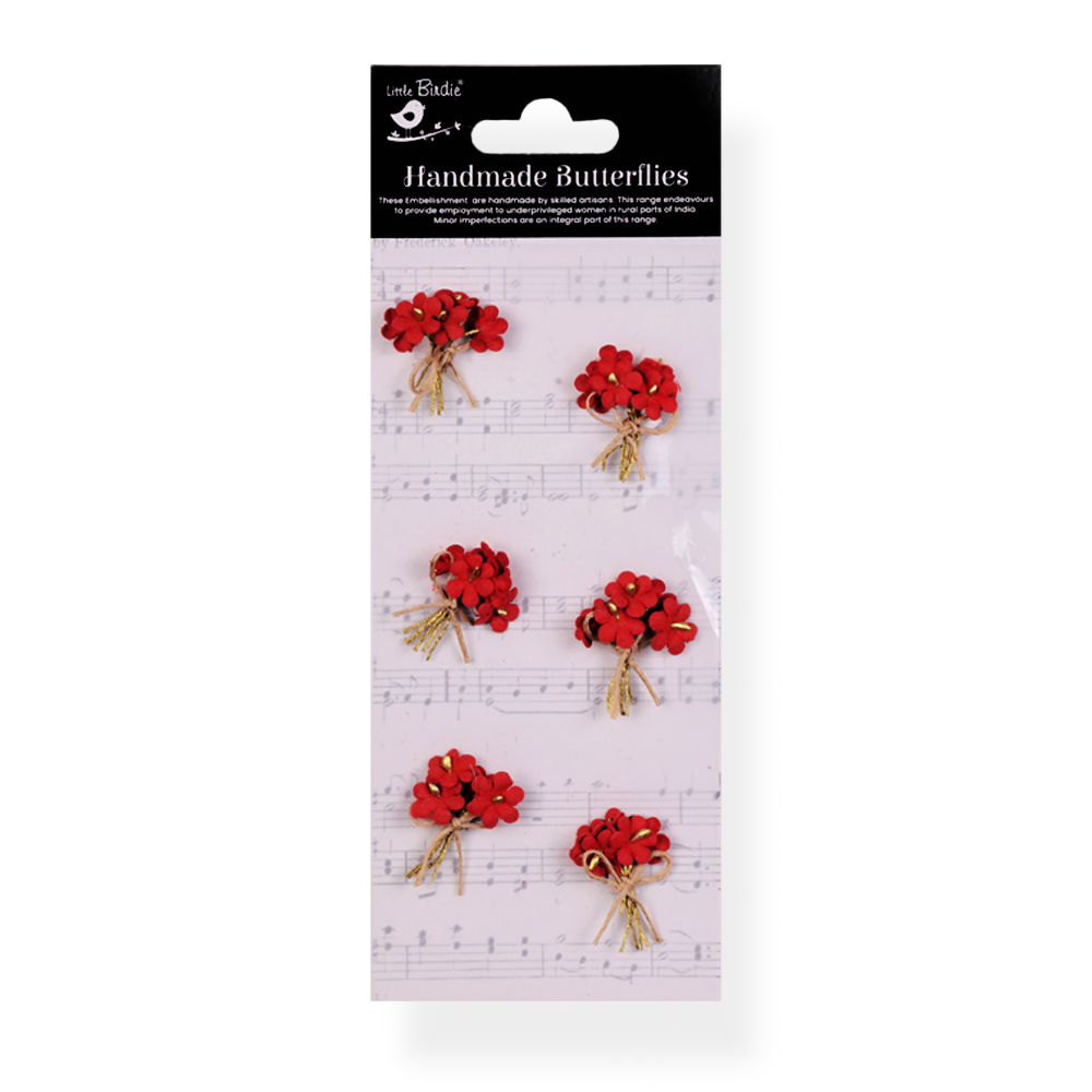 Handmade Flowers Cardinal Red Bouquet Approx 2.5cm 6pc