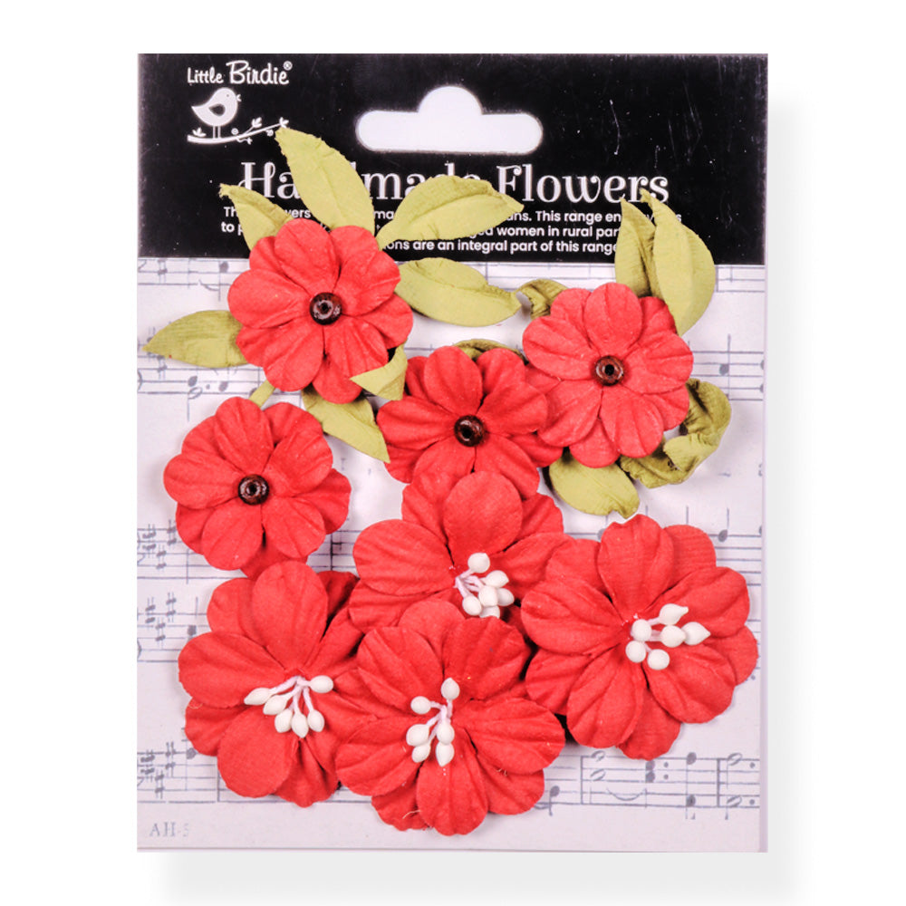 Handmade Flowers Cardinal Red Fiorella Approx 3 & 4Cm 10Pc