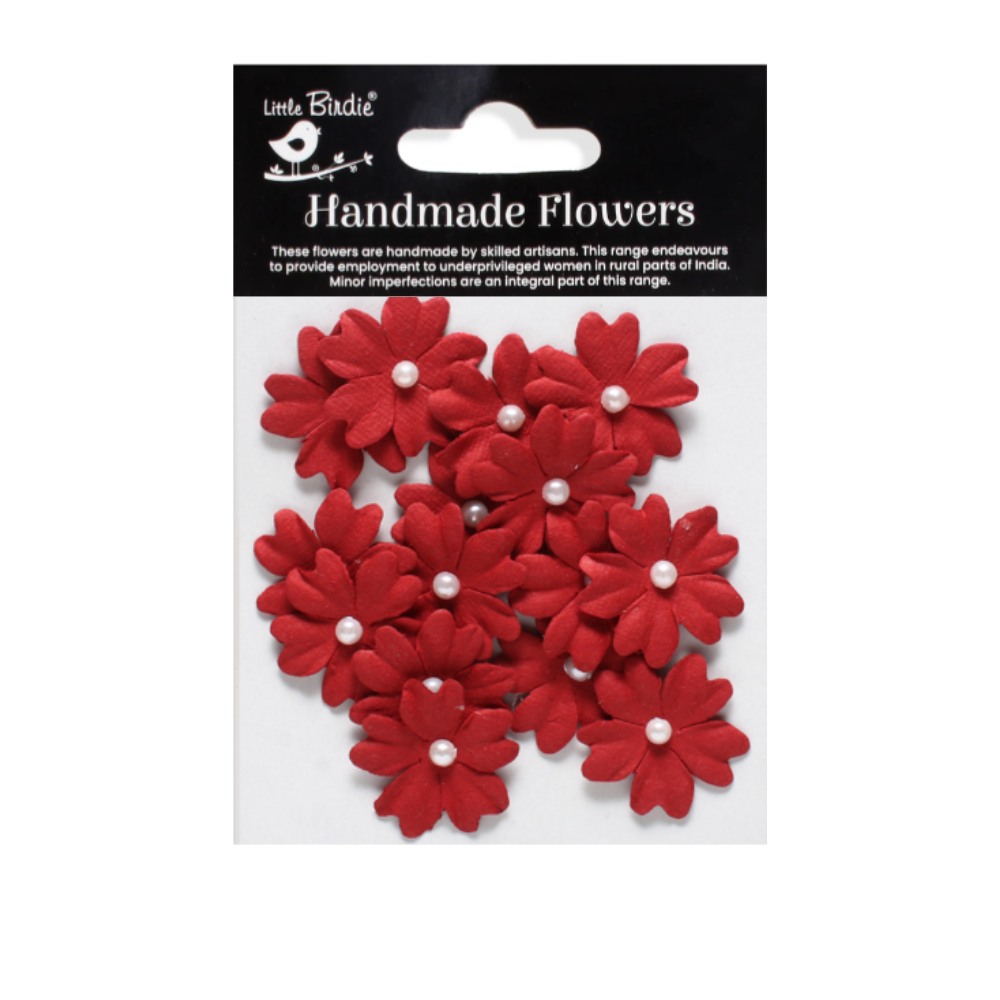 Handmade Flowers Cardinal Red Ijra Approx 2.5Cm 15Pc