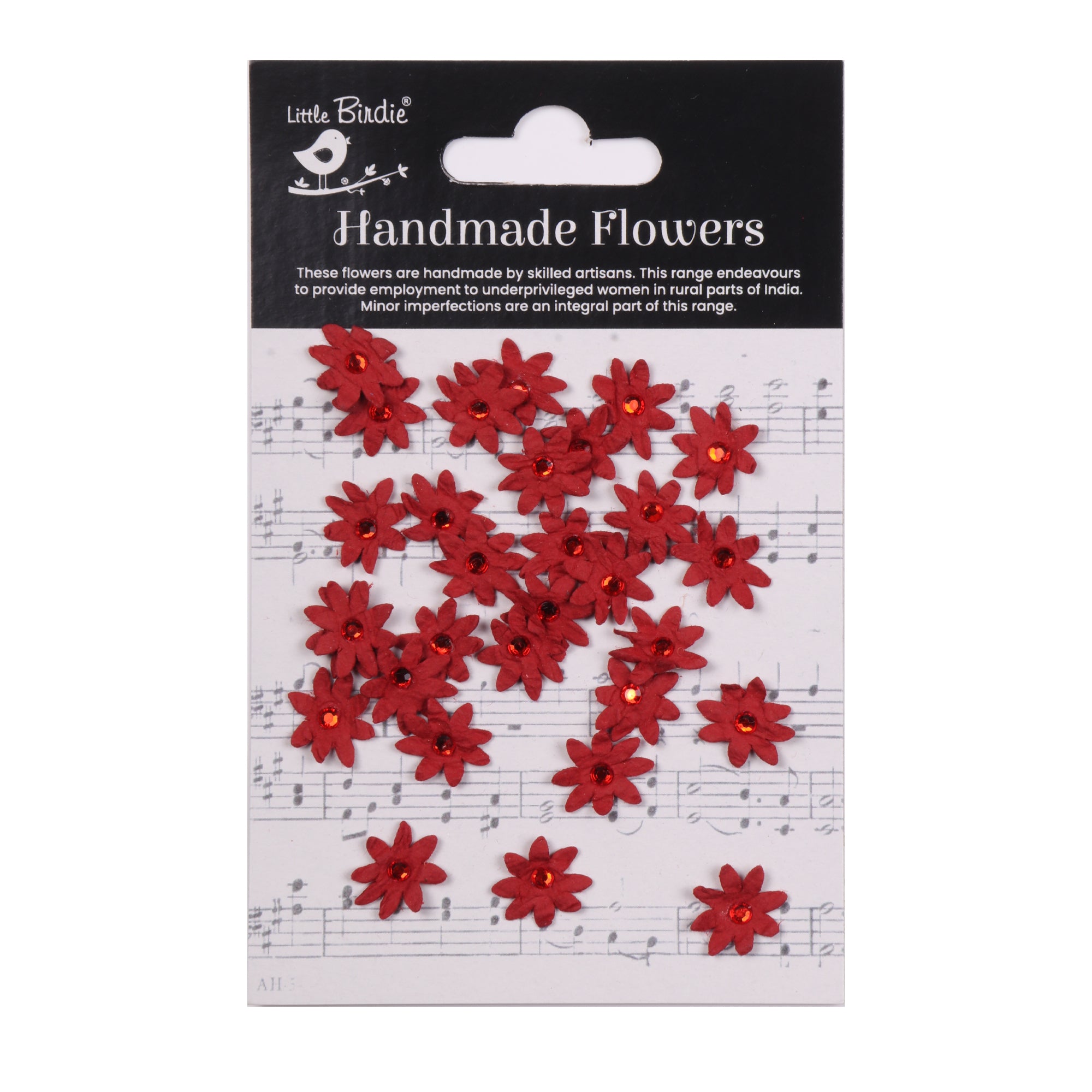 Handmade Flowers Cardinal Red Micro Jewelled Florettes Approx 1.5Cm 30Pc