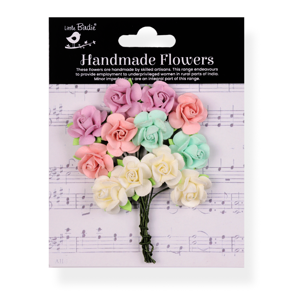 - These handcrafted flowers are perfect embellishments for adding a classic floral touch to projects.