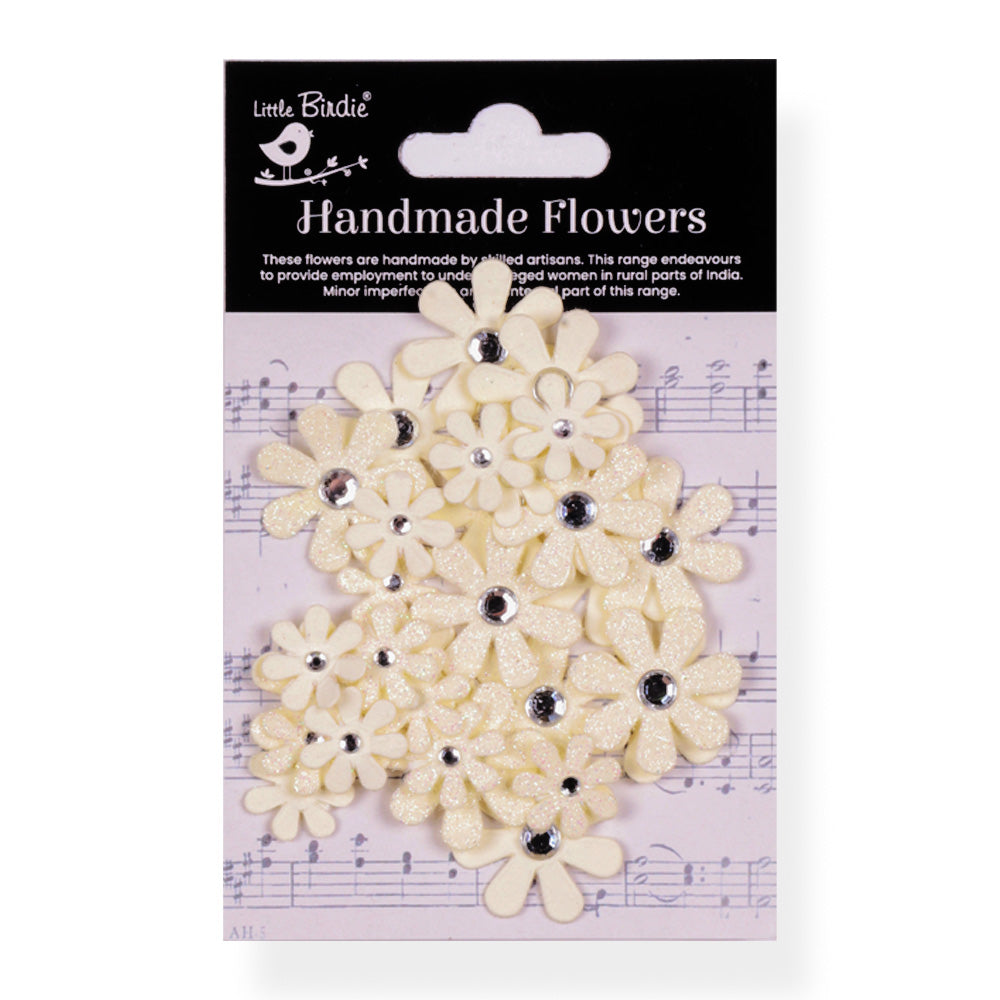 Handmade Flowers Ivory Pearl Sparkle Florettes Approx 1.5 & 2.5Cm 30Pc