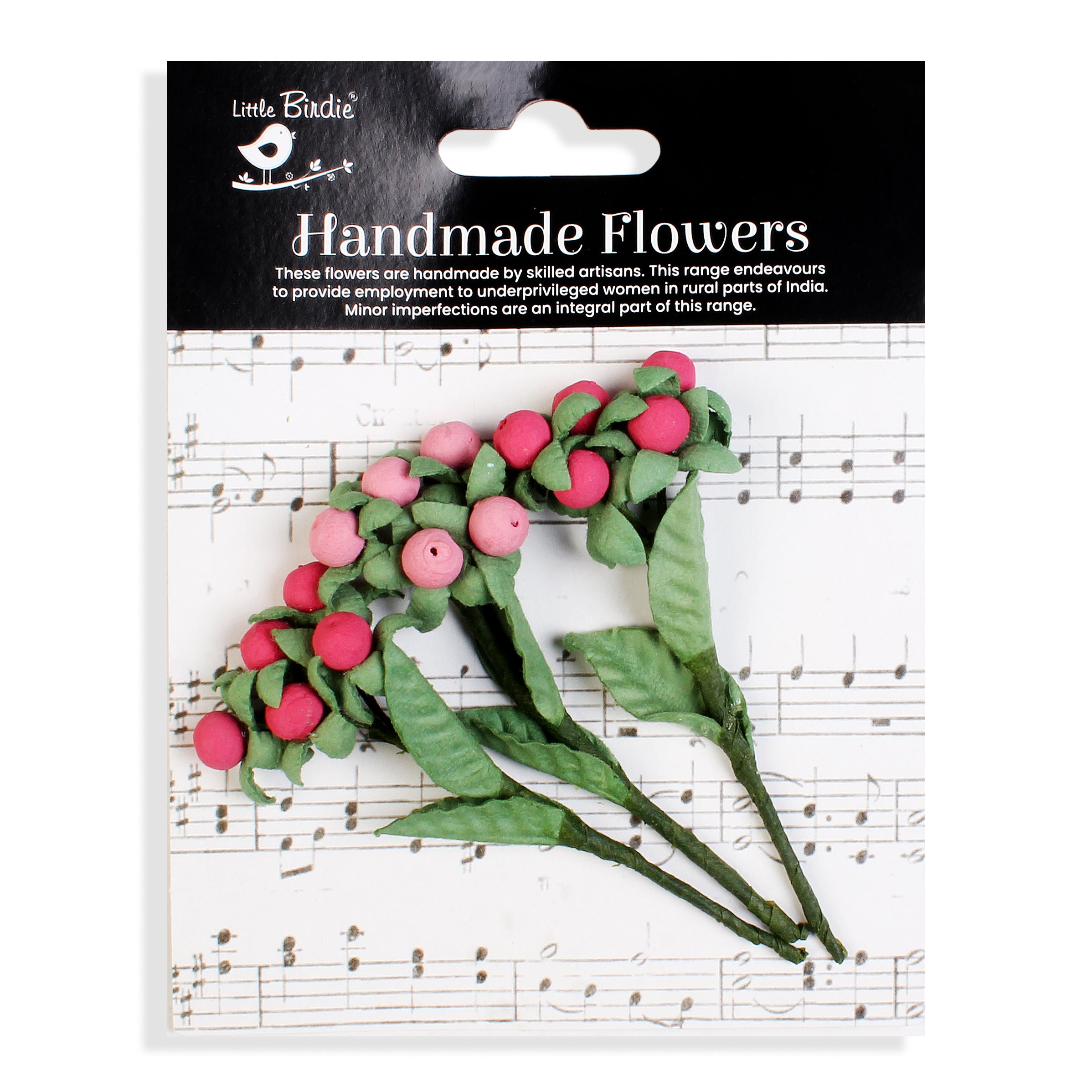 Handmade flowers Precious Pink Berry Branch Approx 1.5Cm 3Pc Pbci Lb