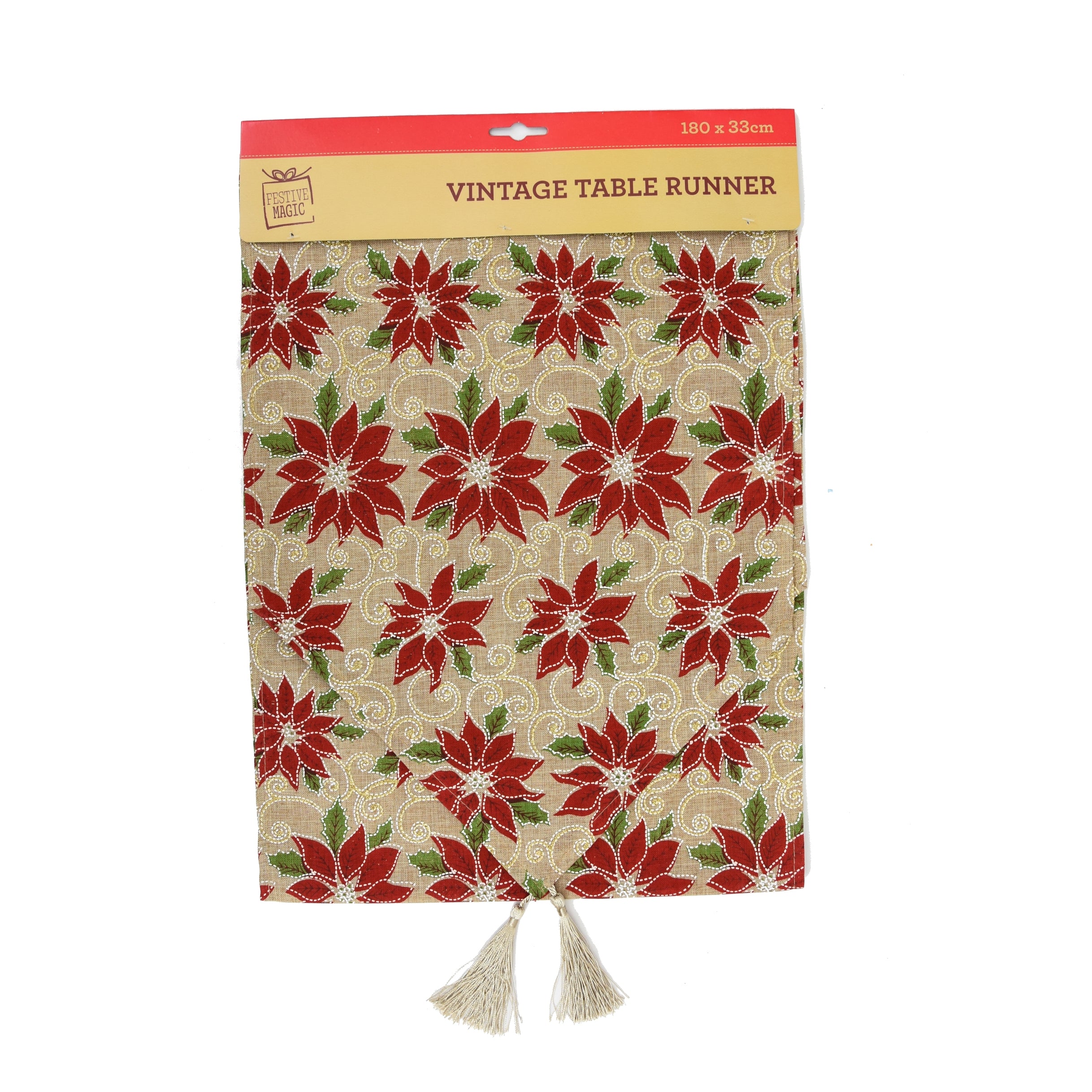 - This vintage table runner is accented with a Christmas theme design to add colour and a festive mood to your home