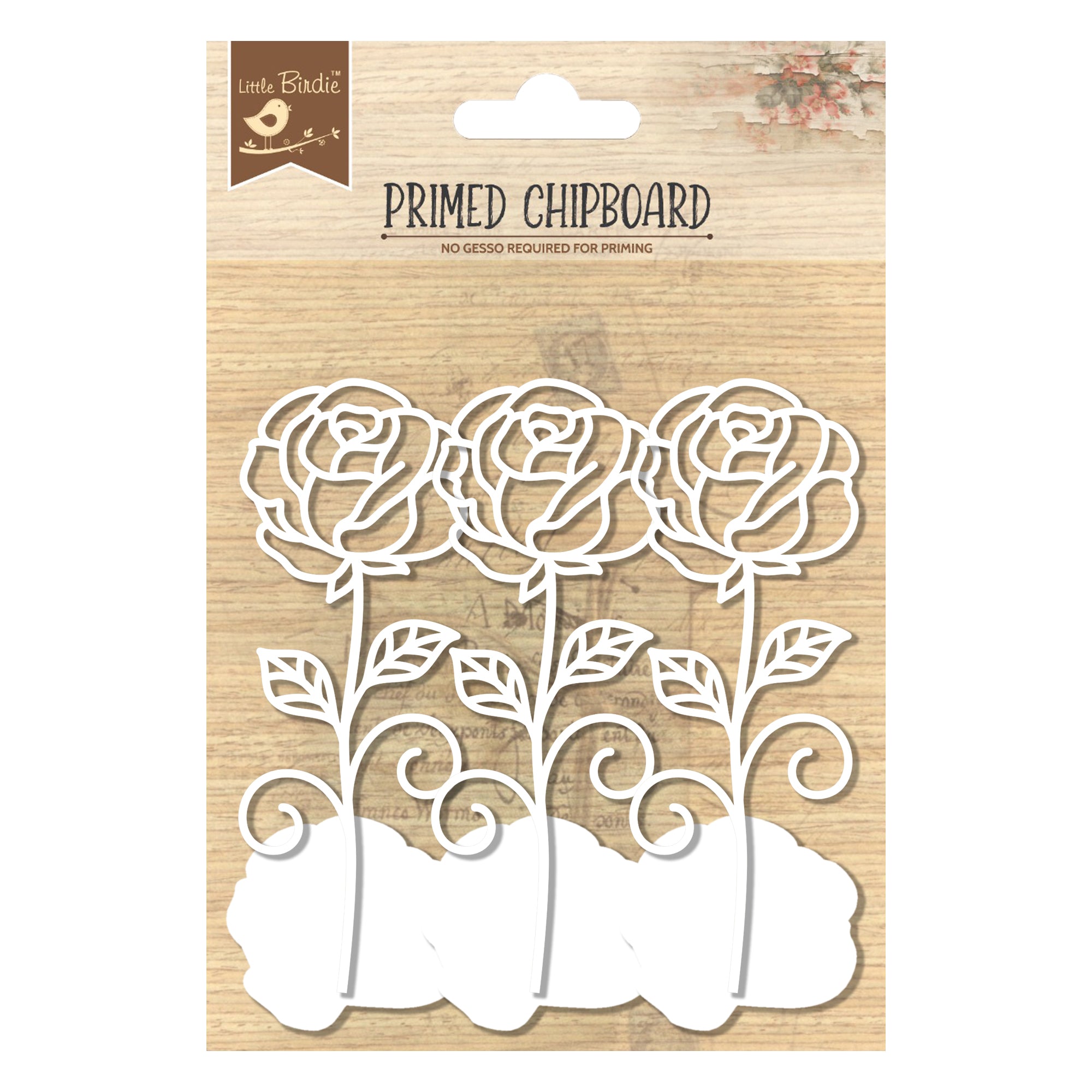 Primed Chipboard Charming Rose 4.25 X 11Cm 3Pc