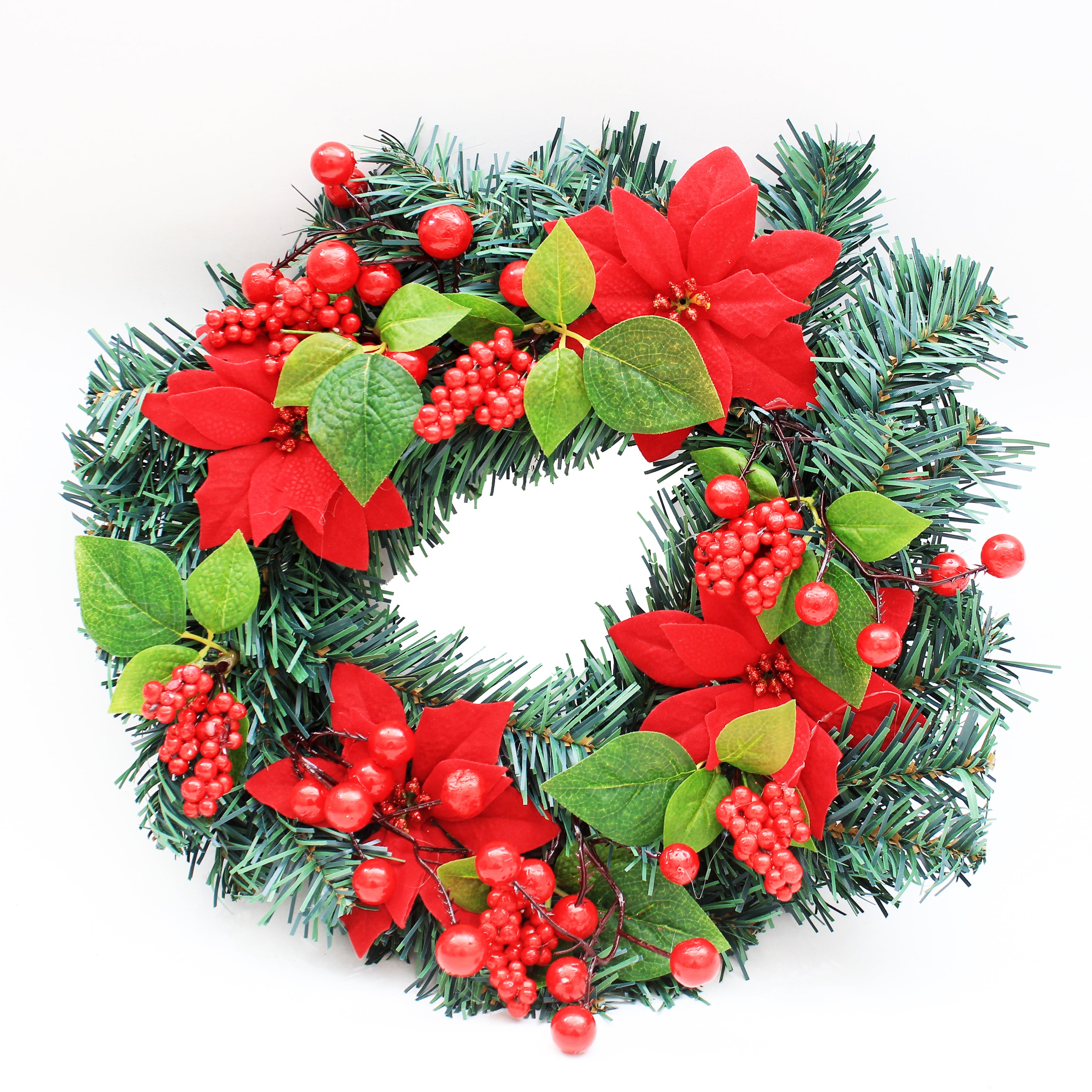 Classic Poinsettia And Berry Wreath - 40cm, 1pc