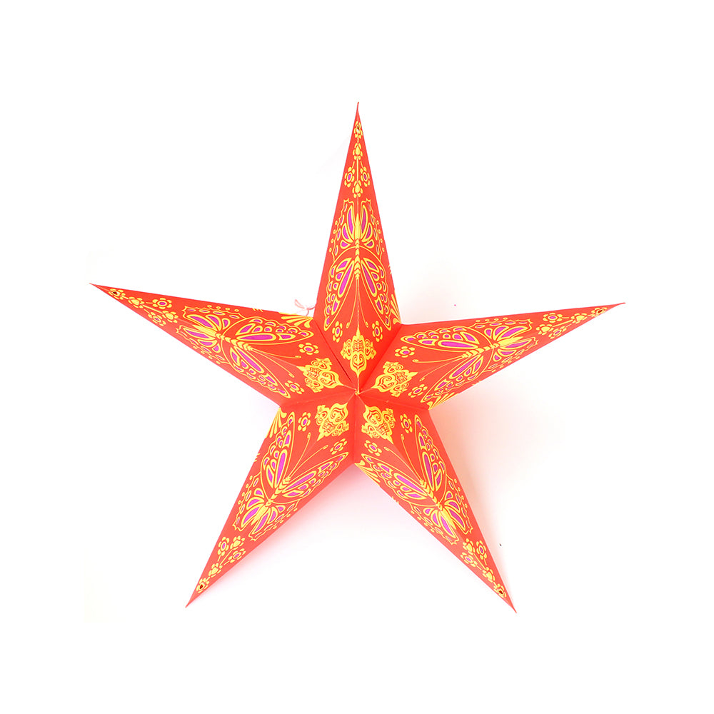 Decorative Paper Hanging Star - Butterflies, Red & Yellow, 1Pc