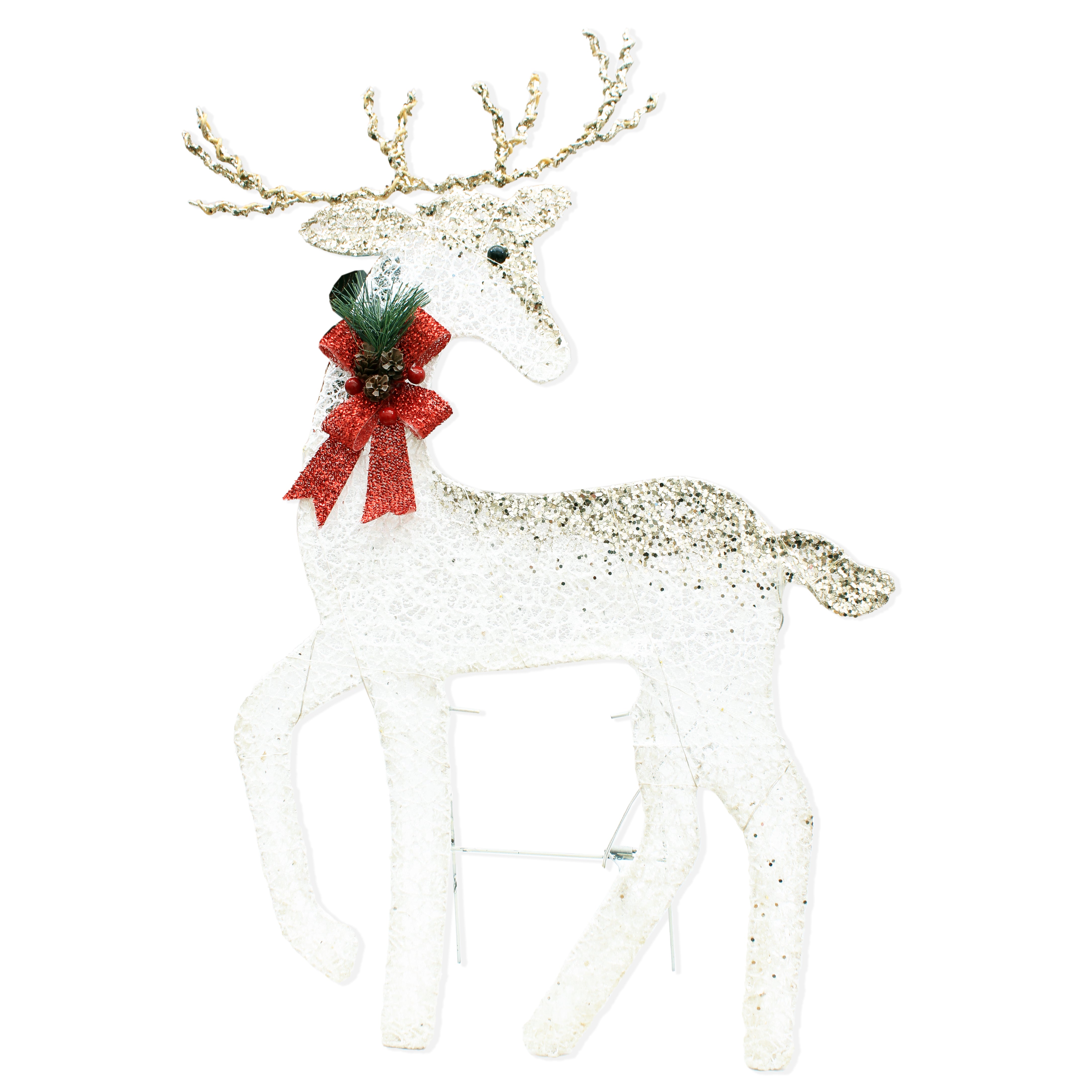 Battery Operated Light Up Elegant Plush Lace Fabric with Glitter Reindeer with Back Stand - 30 LED Lights, 70cm