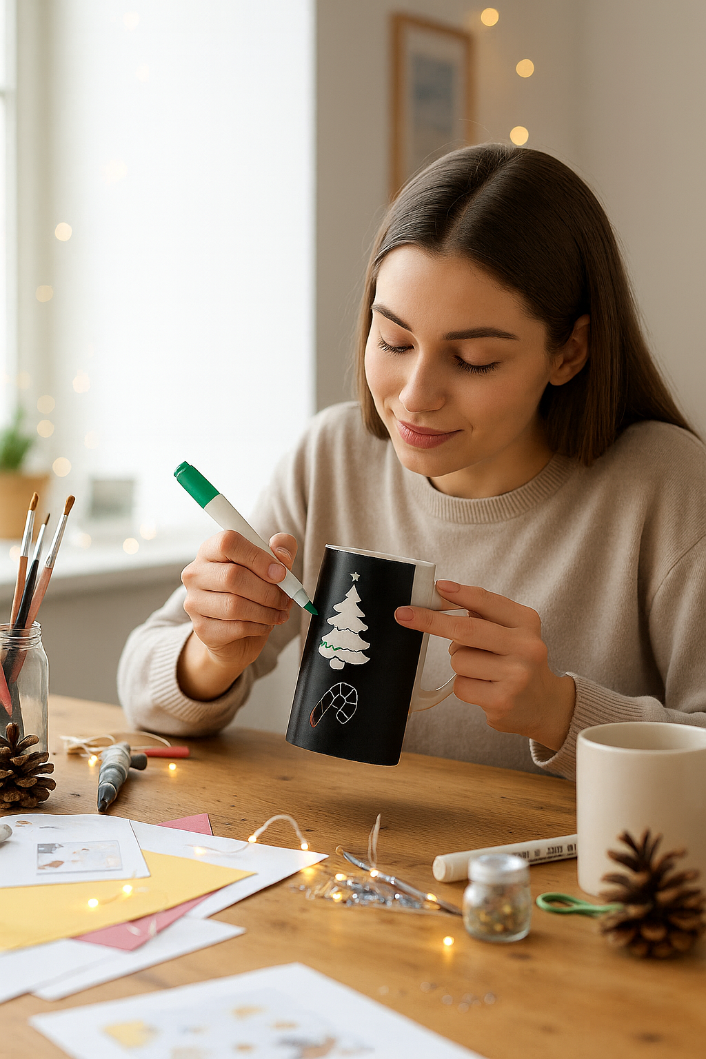Christmas Eco Craft Mug Kit With Paint Markers and Stencil Sheet 1 Box