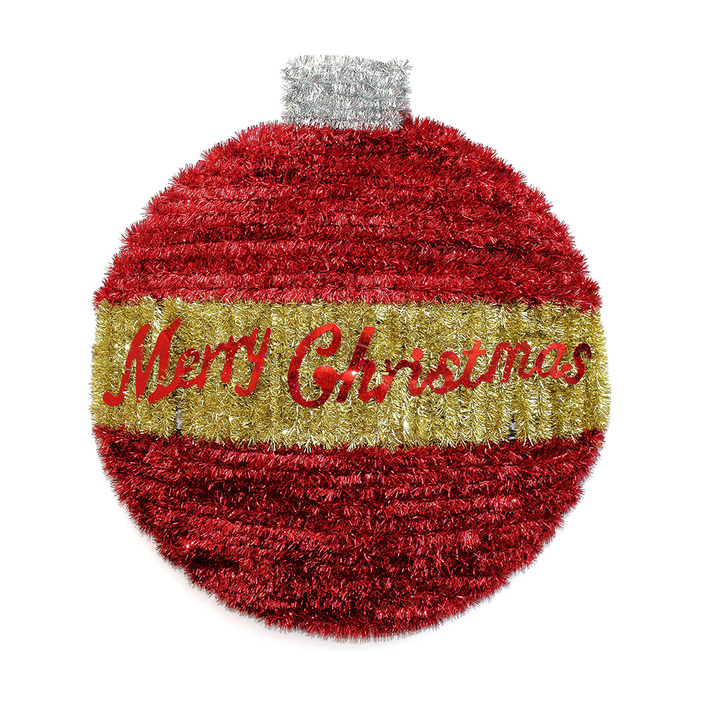 - The one side display, shimmery bauble shape cutout adorned with fine cut tinsel is ideal for hanging from a Christmas tree, door, wall or anywhere else