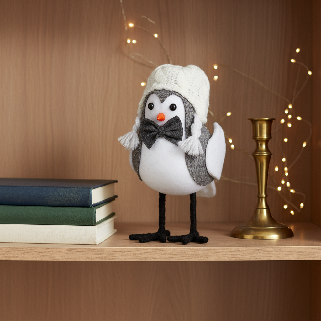 Add a cheerful touch to your holiday décor with this fun and colorful decorative bird. Dressed in cozy winter attire, it’s perfect for adorning your Christmas tree, table, mantel, or any festive setting.