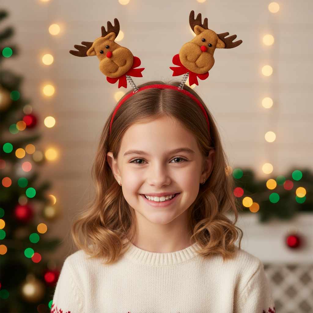Complete your Christmas outfit with this adorable reindeer hair band, perfect for adding instant holiday cheer! The comfortable, flexible band ensures a snug fit for both kids and adults, making it a must-have festive accessory.