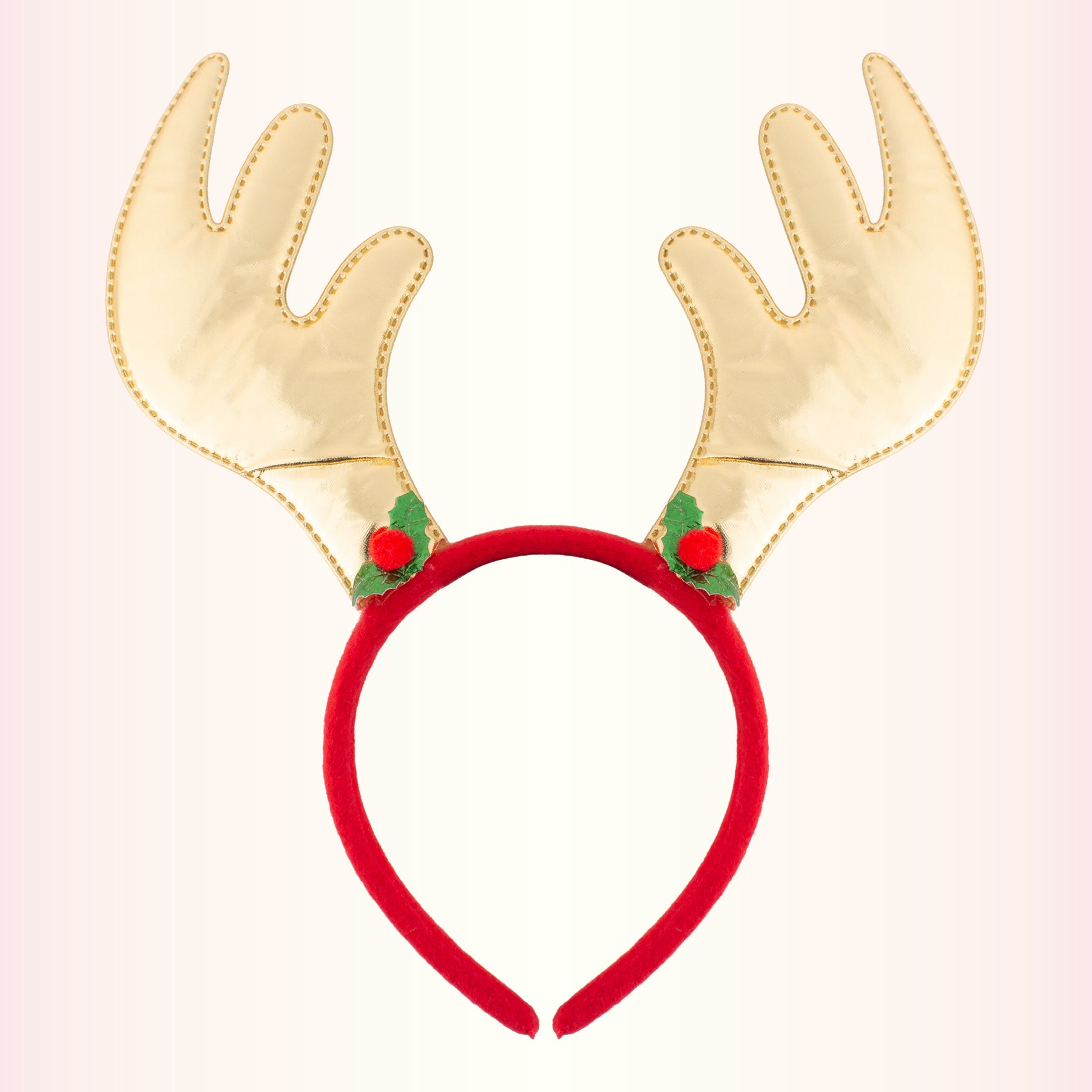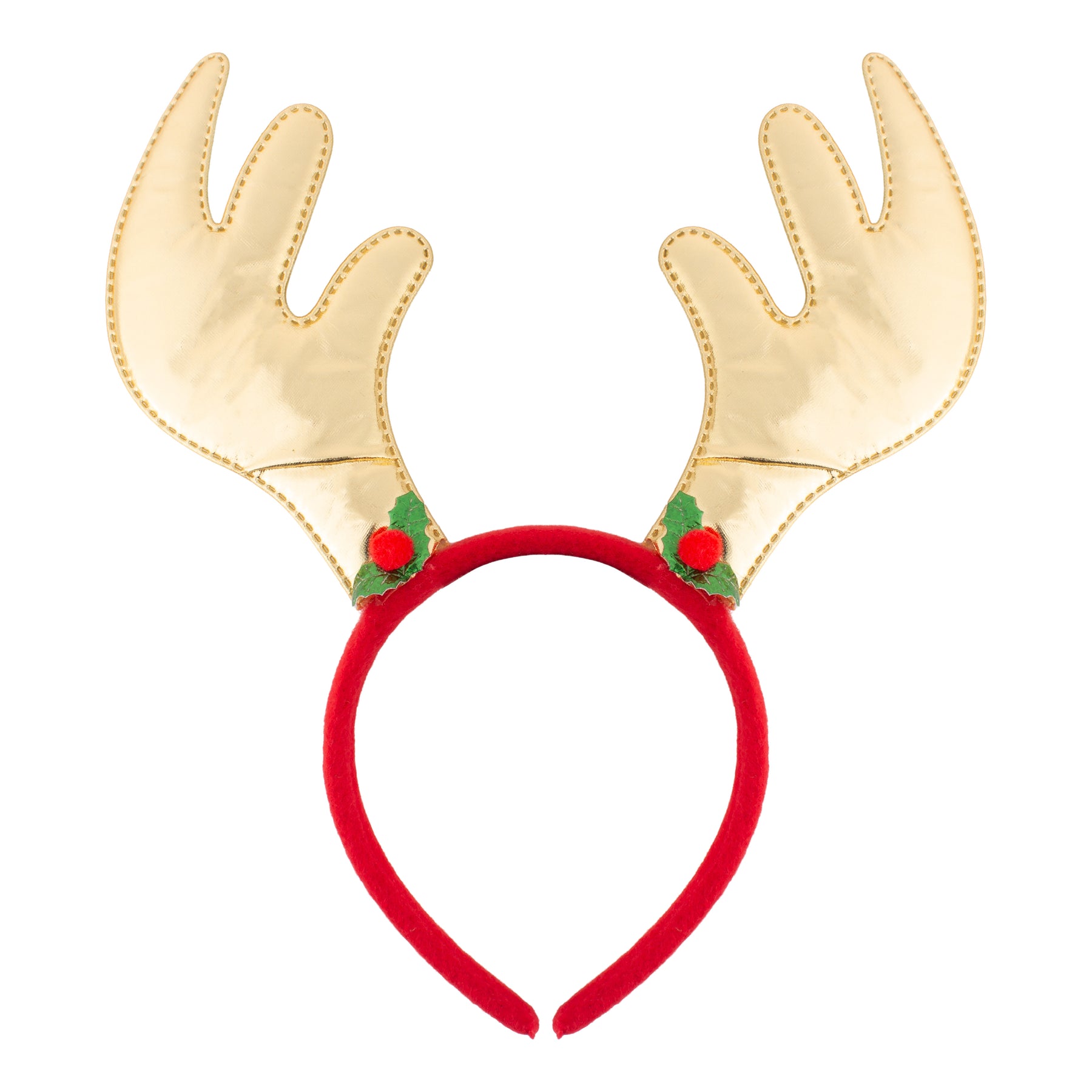 Christmas Reindeer Holly Berry Hair band Gold 1pc