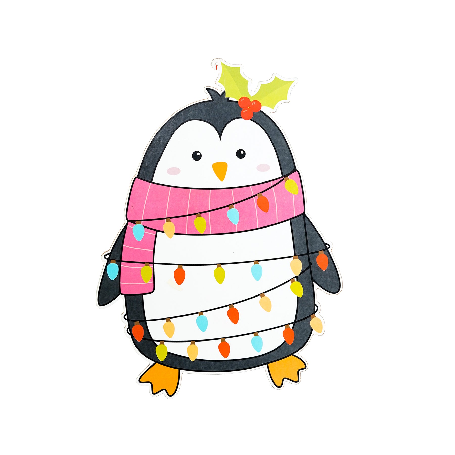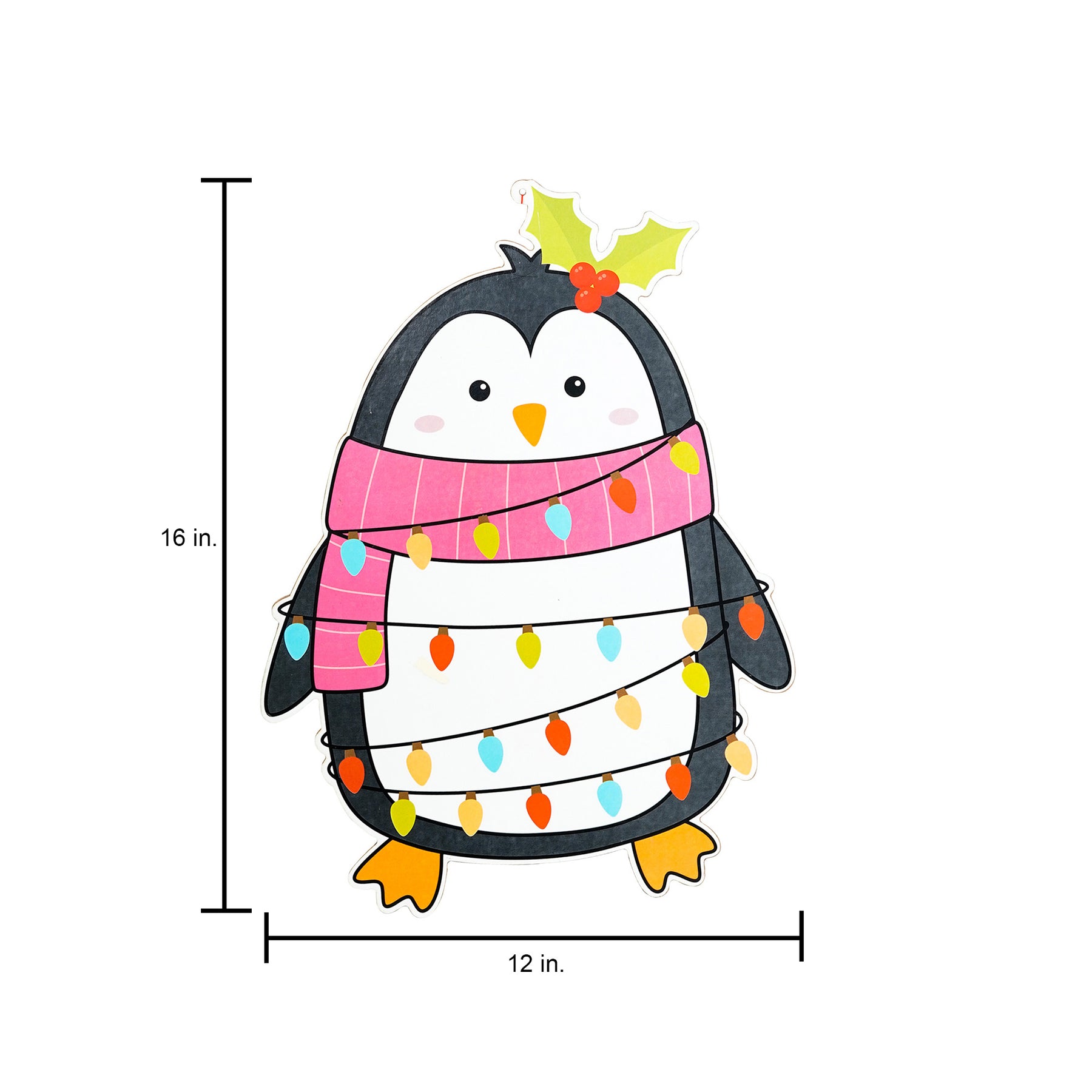 Foil Printed MDF Christmas Wall Hanging Decor - Festive Penguin, W12 x H16 x D0.07inches, 1pc