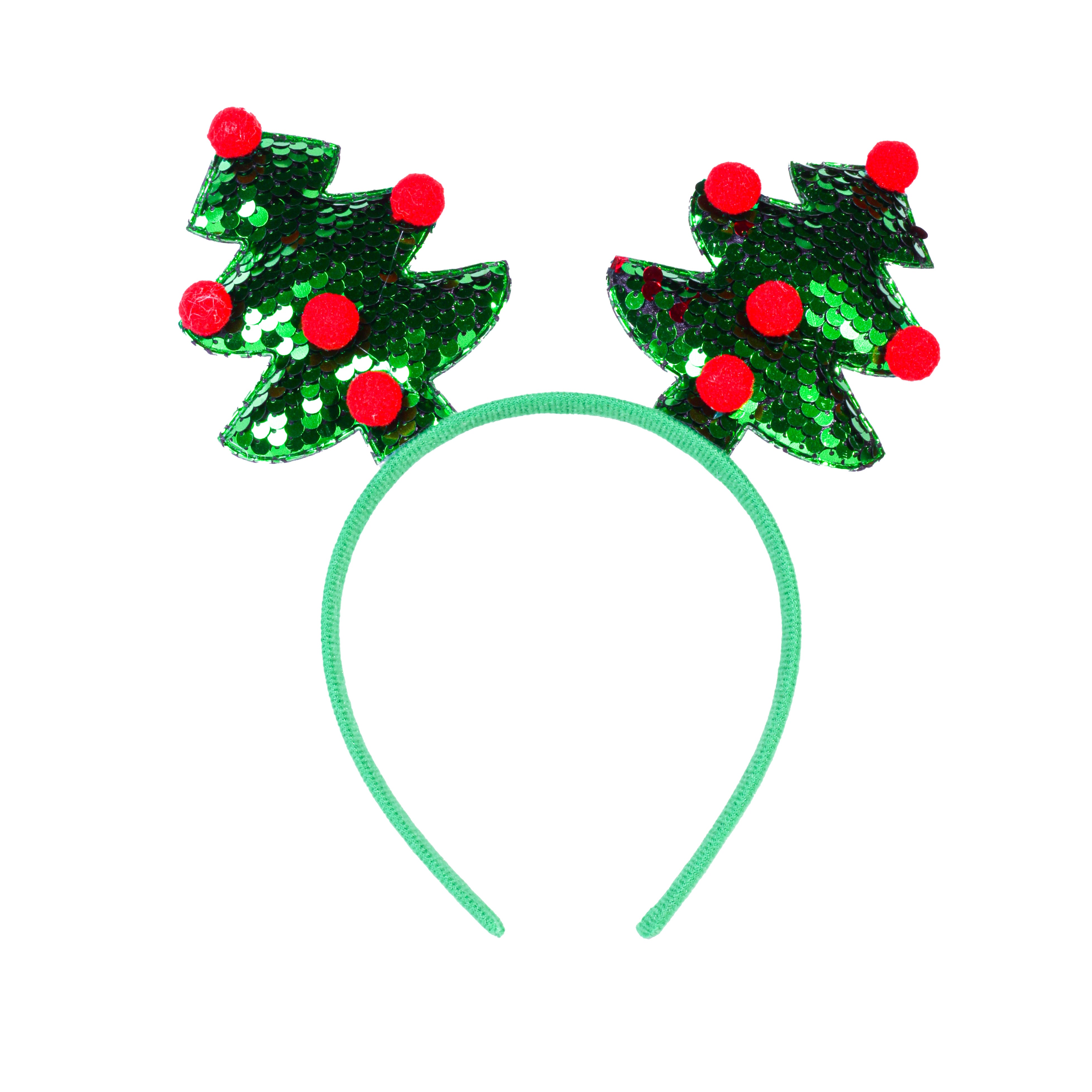 - Elevate your holiday style with our Green Holly Sequins Headband, a charming and eye-catching accessory that adds a touch of festive sparkle and sophistication to your look.
