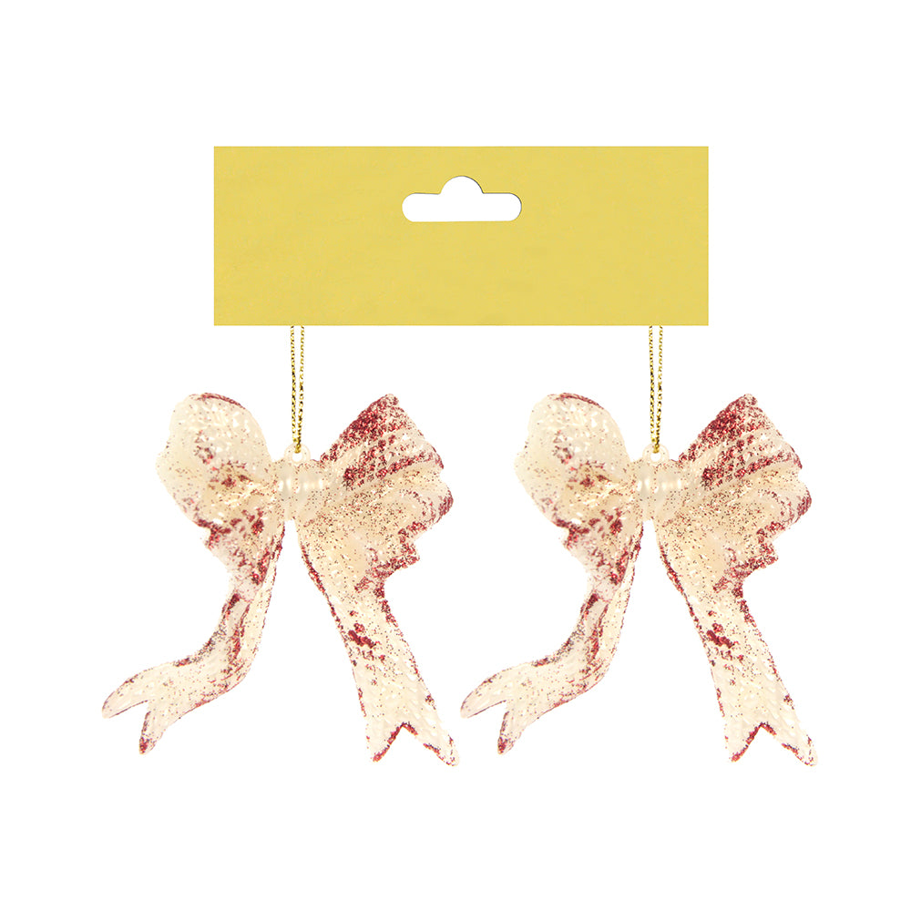 Christmas Decorative Hanging 2Pc- Glitter Bow Red