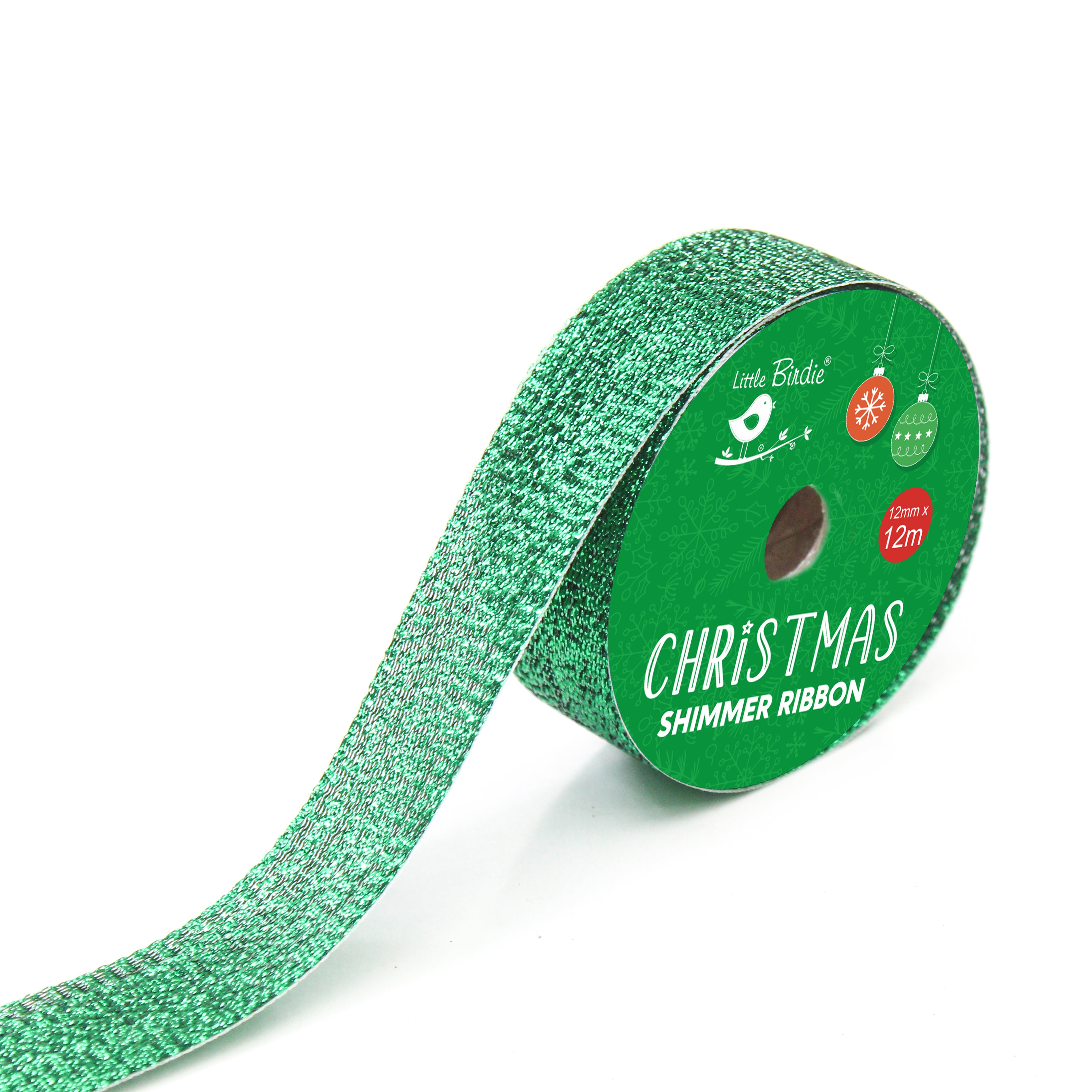 Christmas Shimmer Ribbon - 25mm, Green, 5mtr