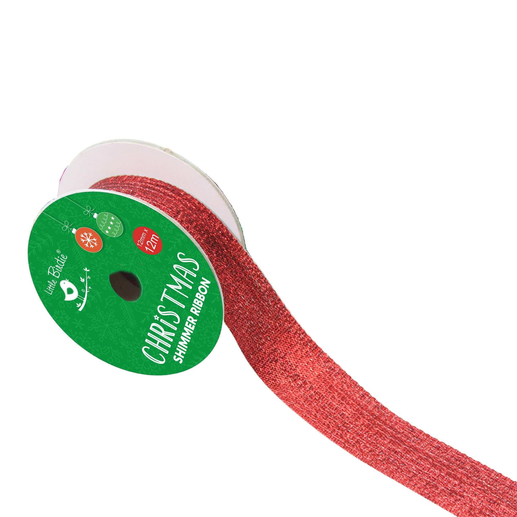 Christmas Shimmer Ribbon - 25mm, Red, 5mtr