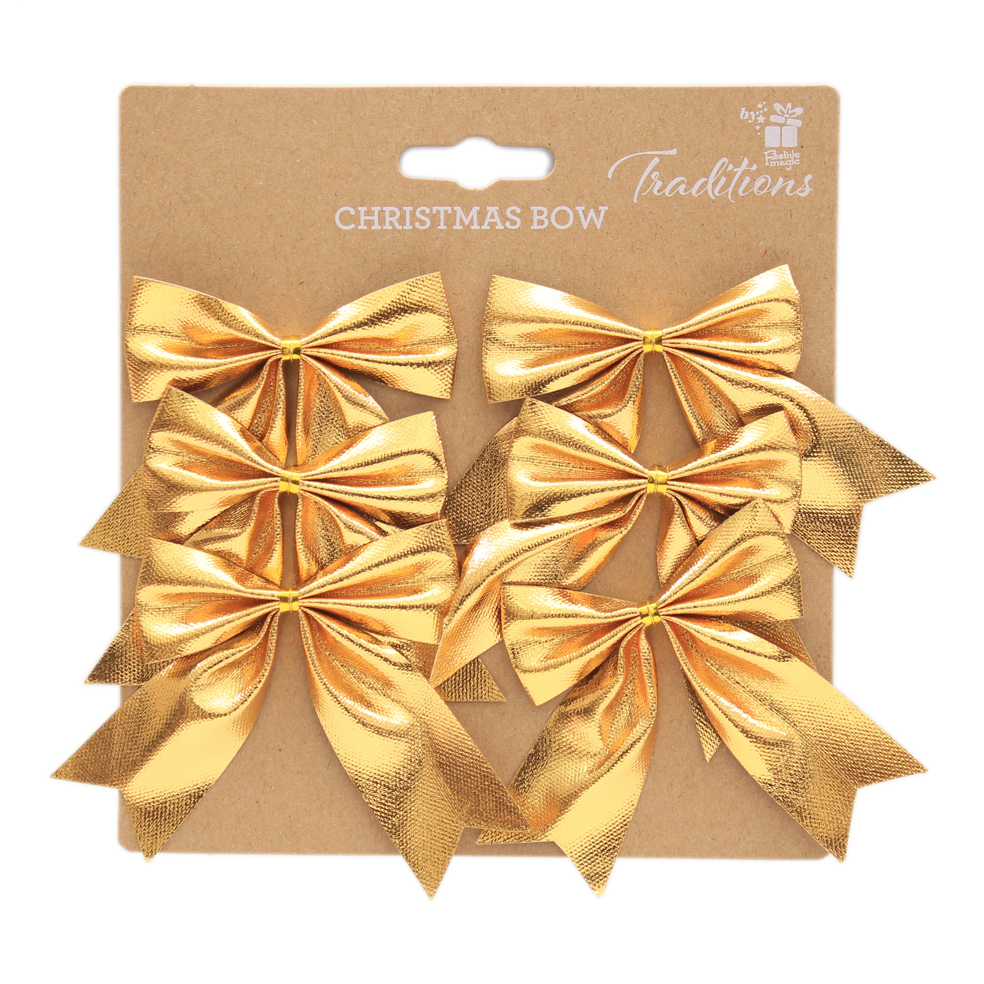 - This set of 6 shiny fabric bows with a metallic finish are ideal for gift wrapping, sewing, and various craft projects