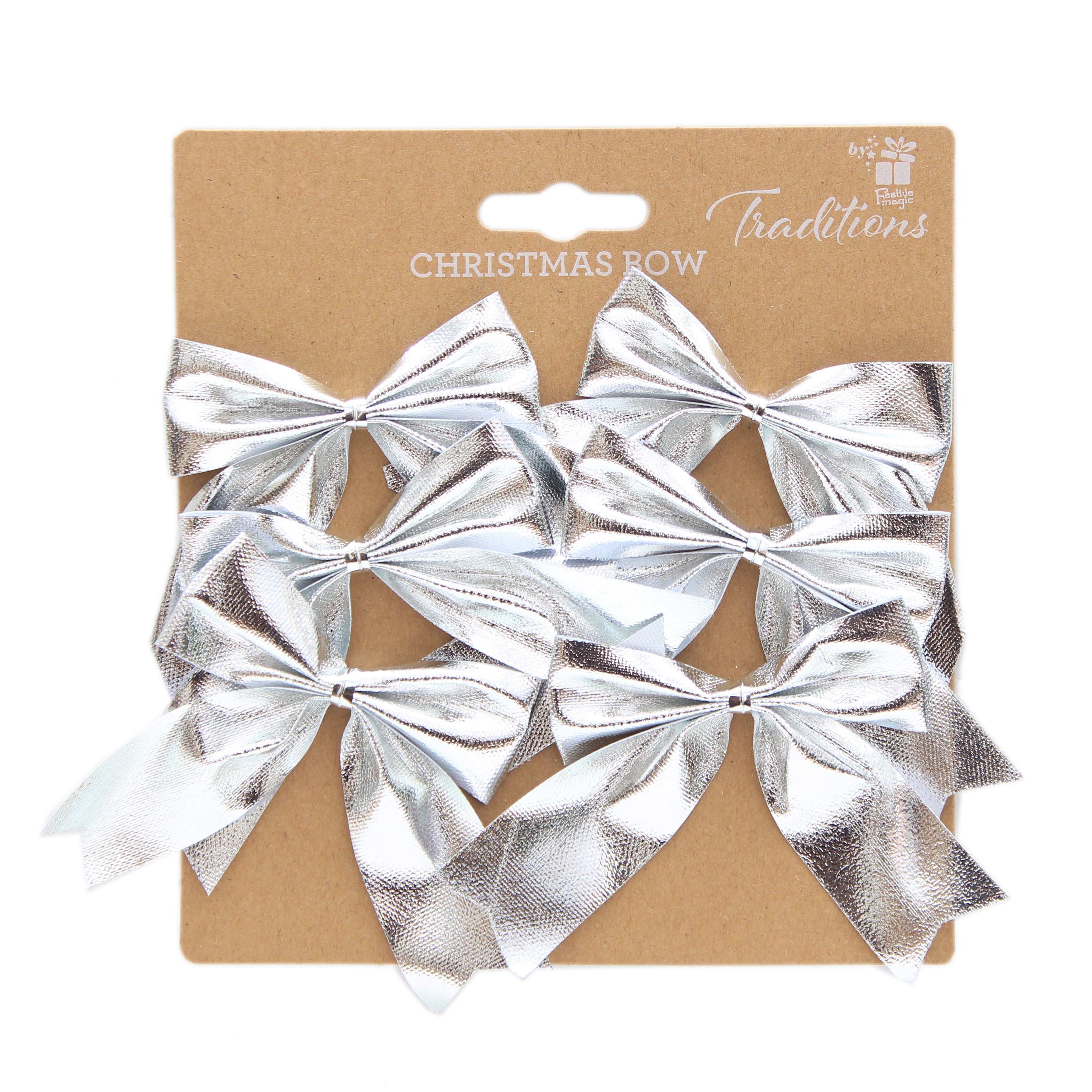 - This set of 6 shiny fabric bows with a metallic finish are ideal for gift wrapping, sewing, and various craft projects