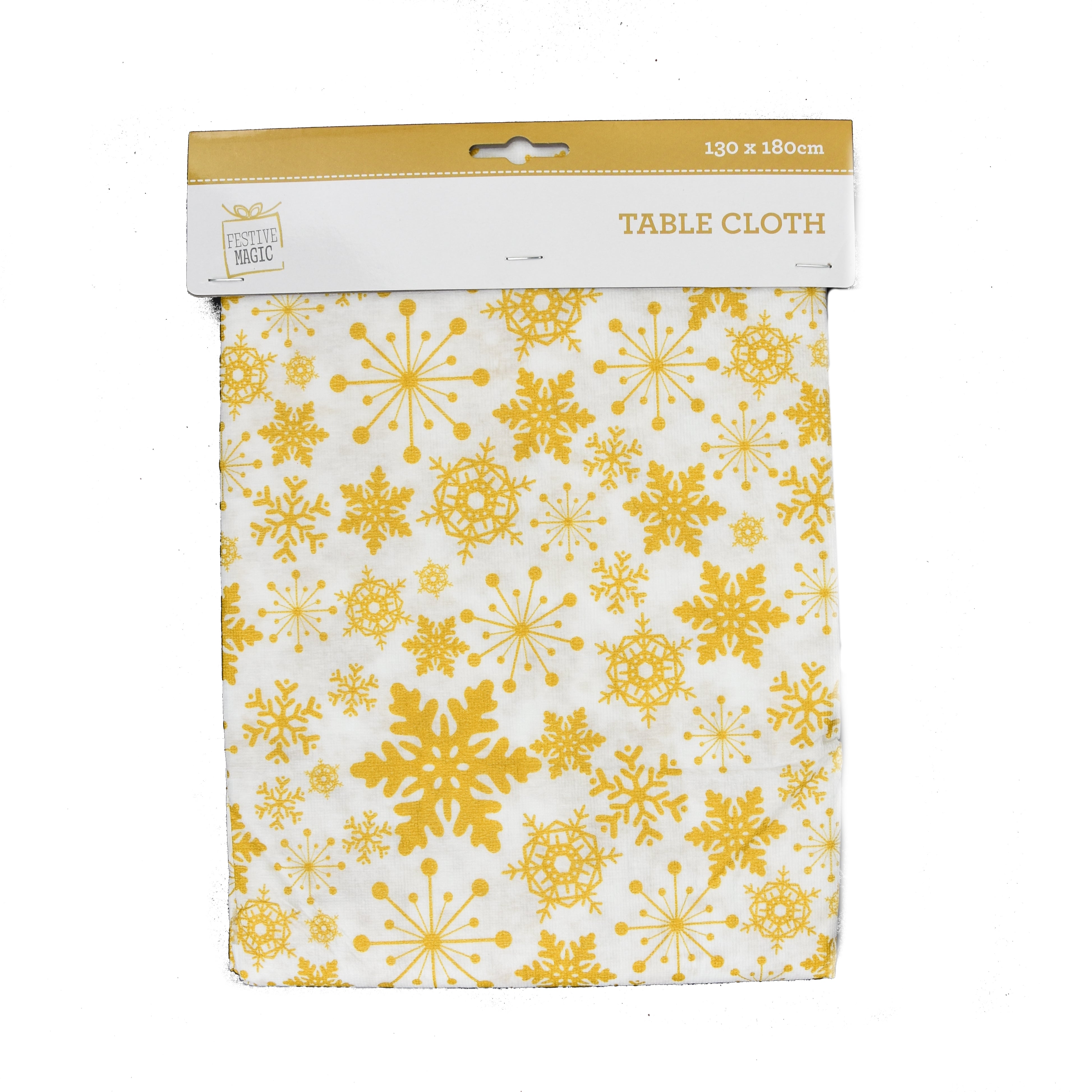 Christmas Tablecloth- Gold Snow Flakes, 130 X 180 CM