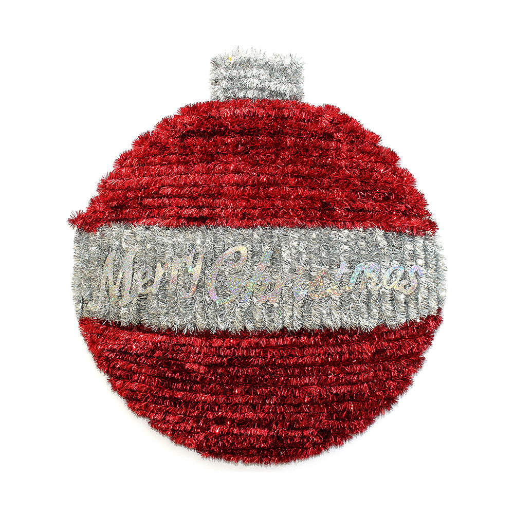 Tinsel Bauble - Merry Christmas, Red & Silver, 1Pc