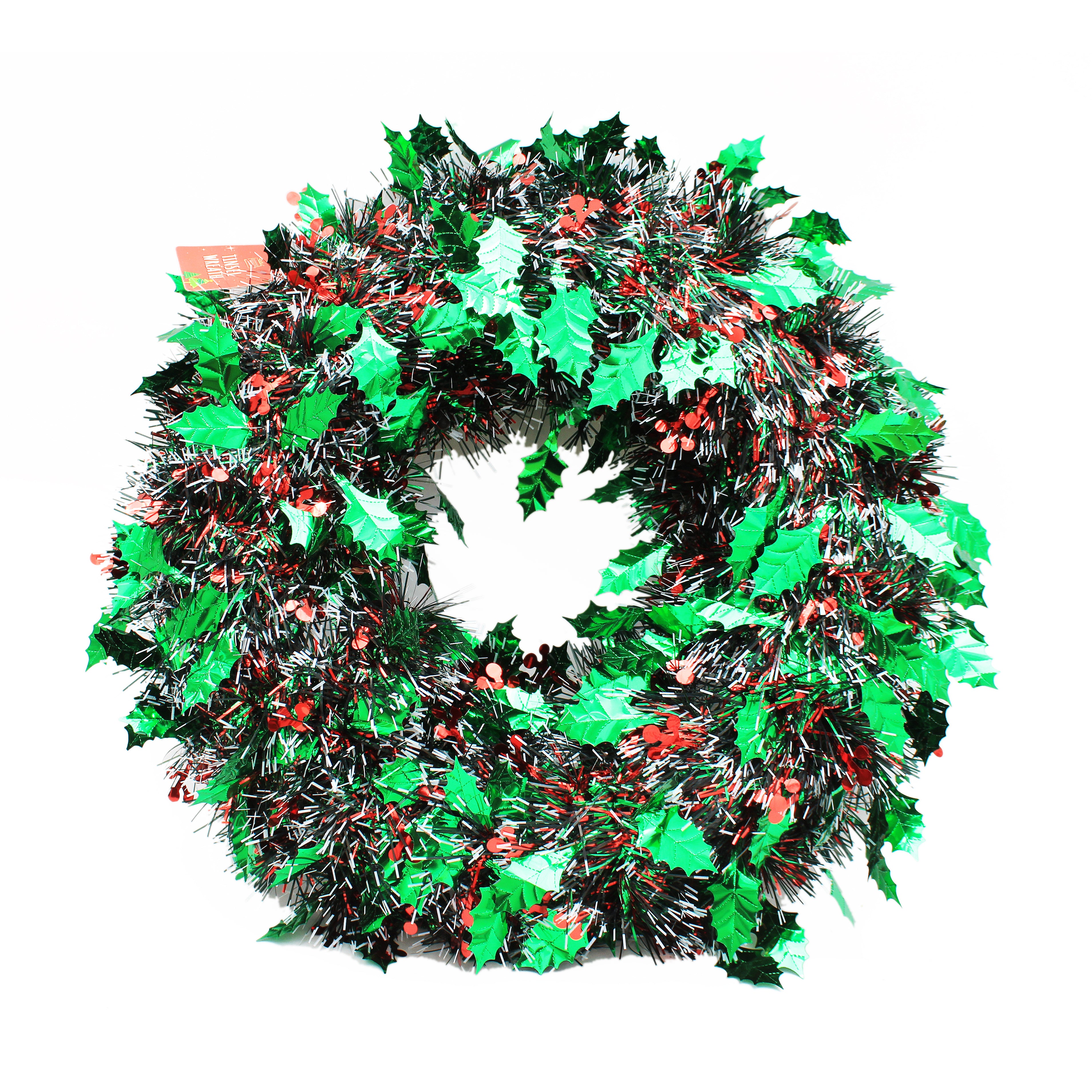 Tinsel Holly Berry Wreath - 45cm, 1pc
