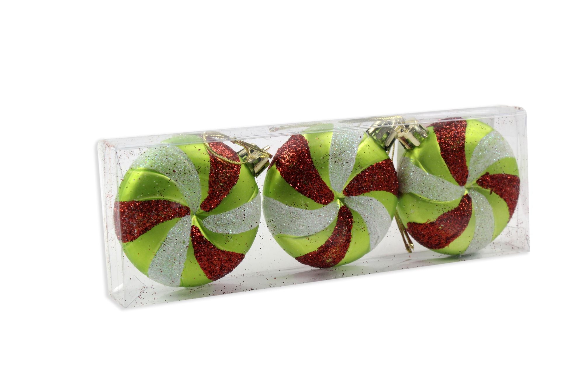 Christmas Decorative Hanging - Candy, Green And Red - Green 2.5 X 2.5, 1Box