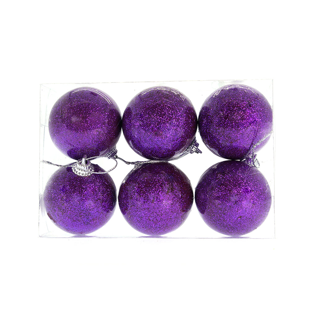 Christmas Decorative Hanging Glitter Baubles 6Pc- Purple