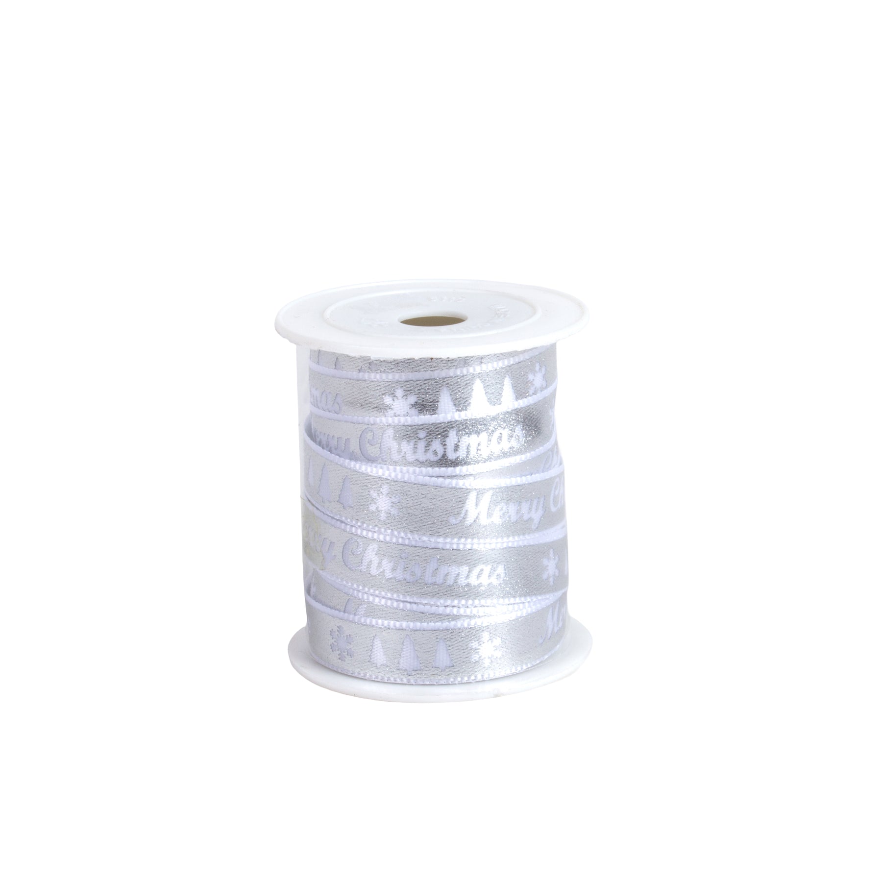 Merry Christmas Metallic Printed Satin Ribbon Silver 1cm X 4.5mtr 1pc