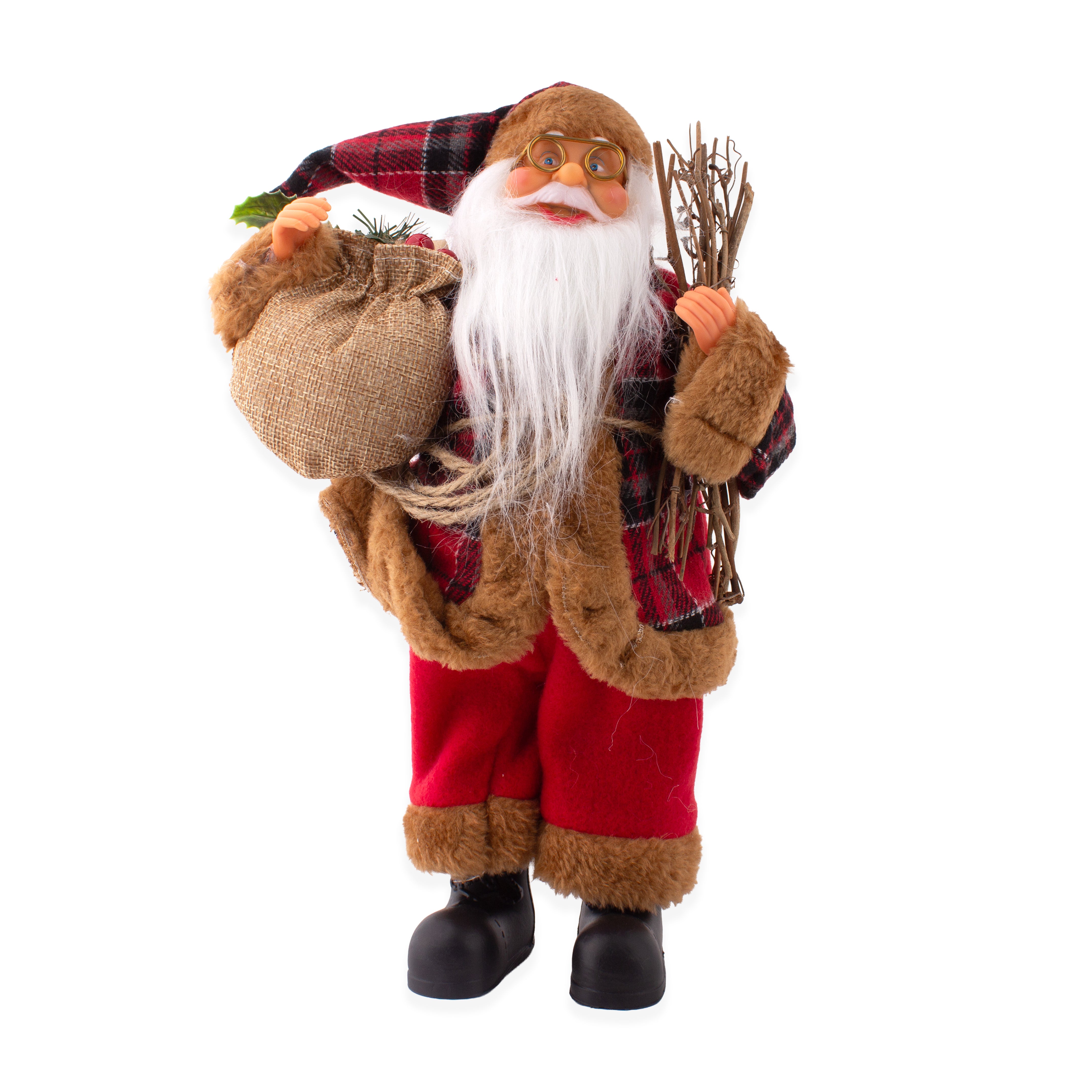 Christmas Figurine Doll Santa Claus Sitting with Red Berries 15inch 1pc