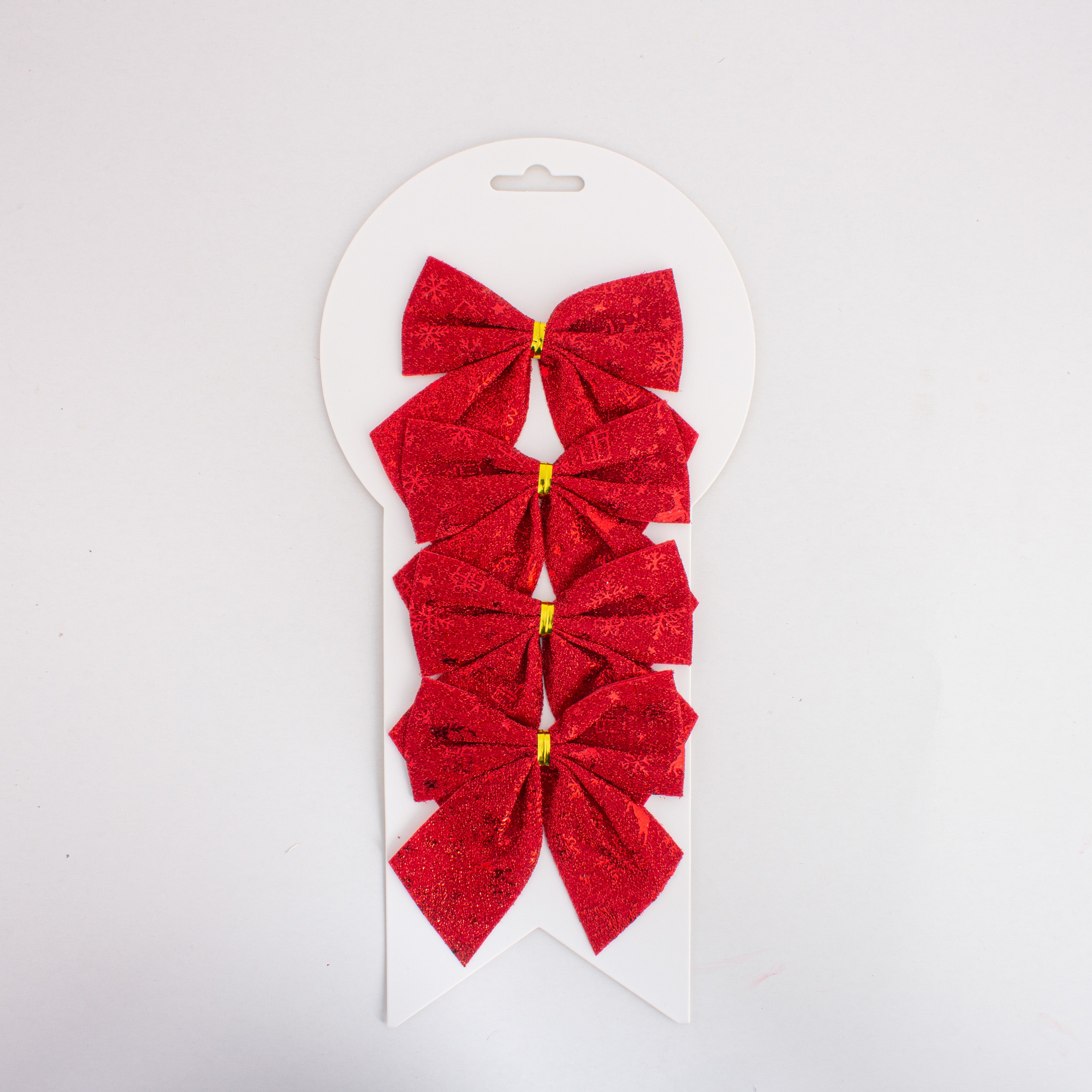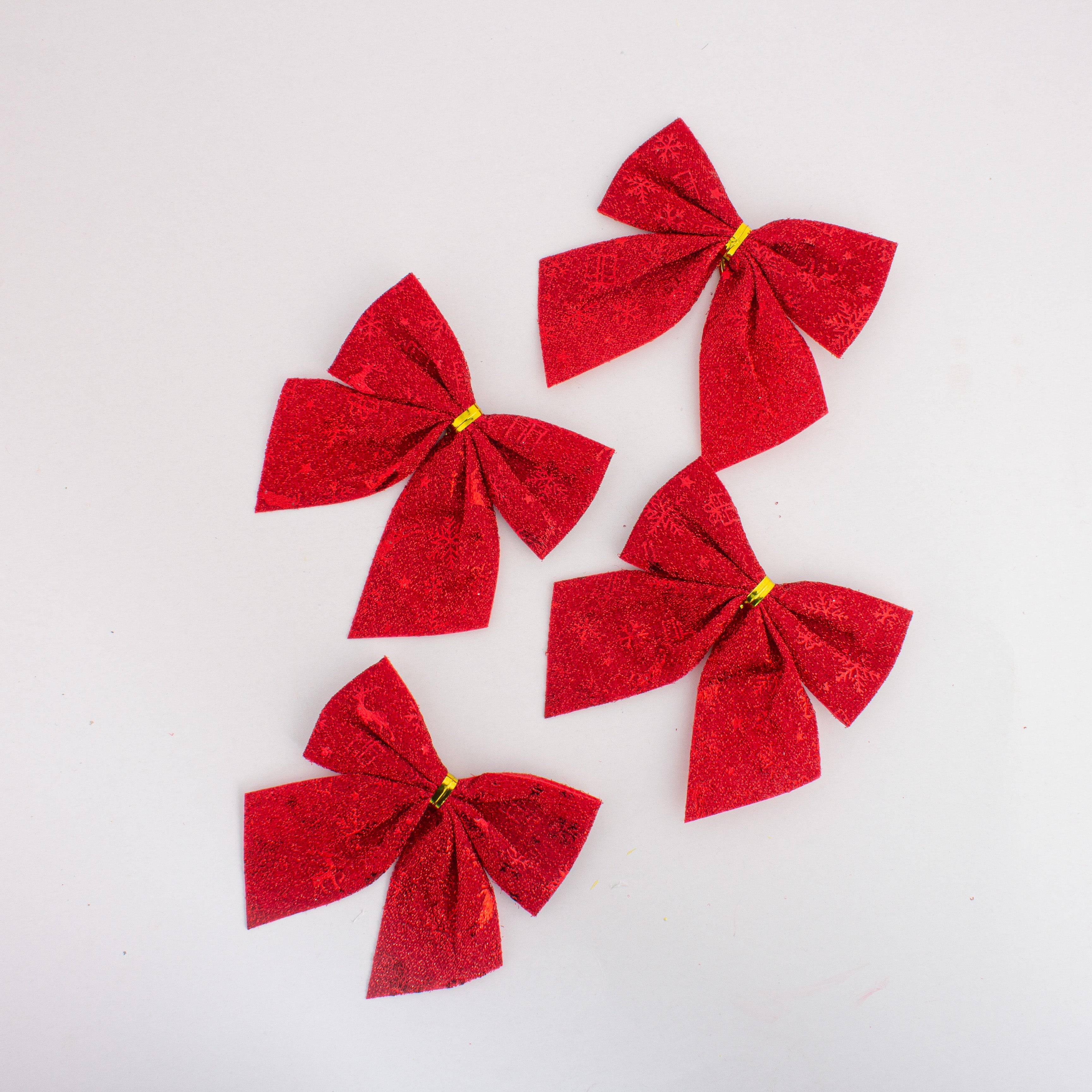 Christmas Decorative Printed Metallic Bow Red 4pc 3.5inch X 3.5inch 1Pack