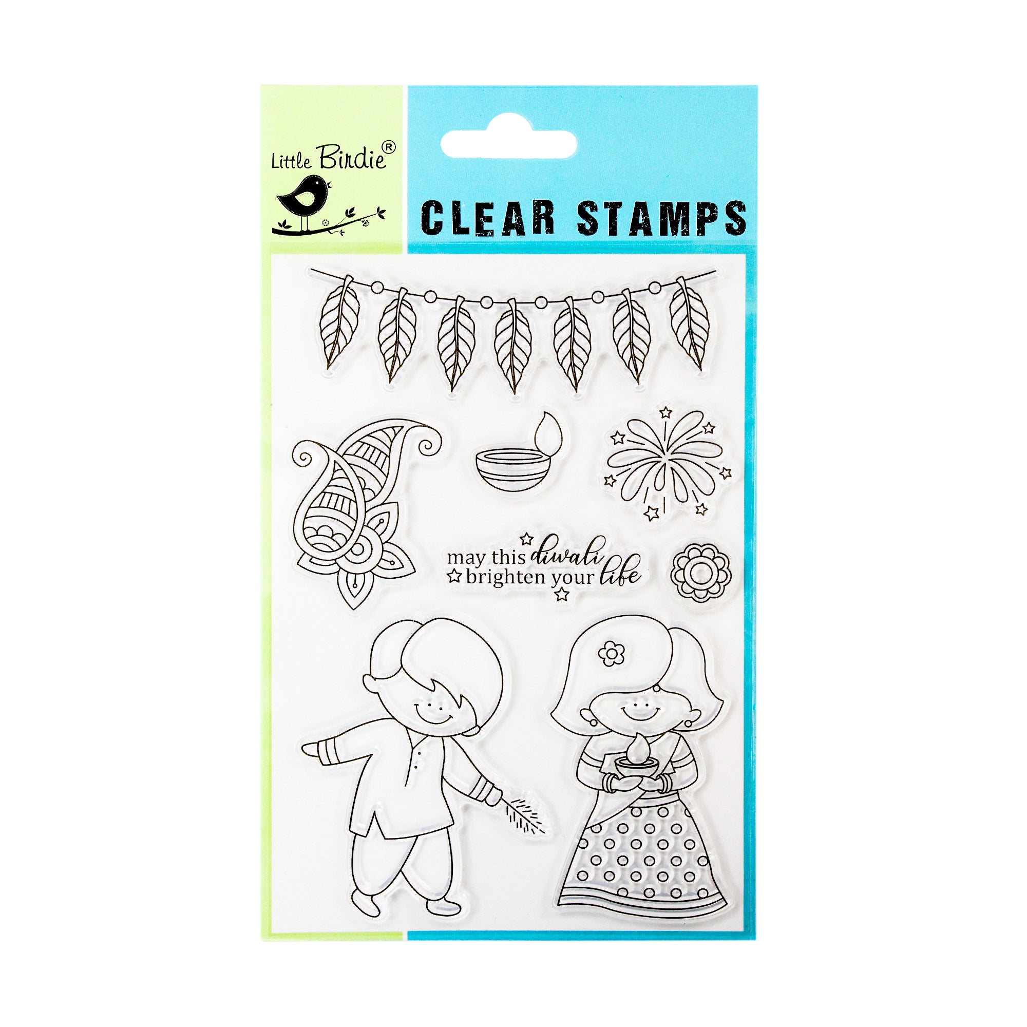 Little Birdie Clear Stamps - Diwali Wishes, 4 X 6, 8Pc