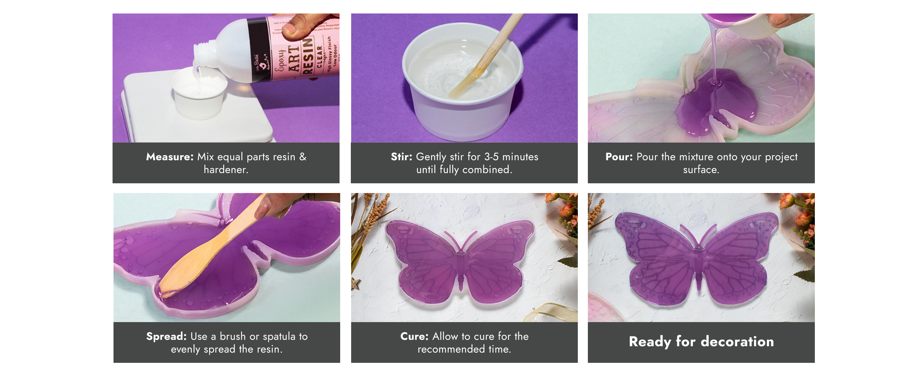 Allow the epoxy resin to cure undisturbed in a dust-free environment. Follow the curing time specified by the manufacturer, and avoid touching or moving the project until it has fully cured.