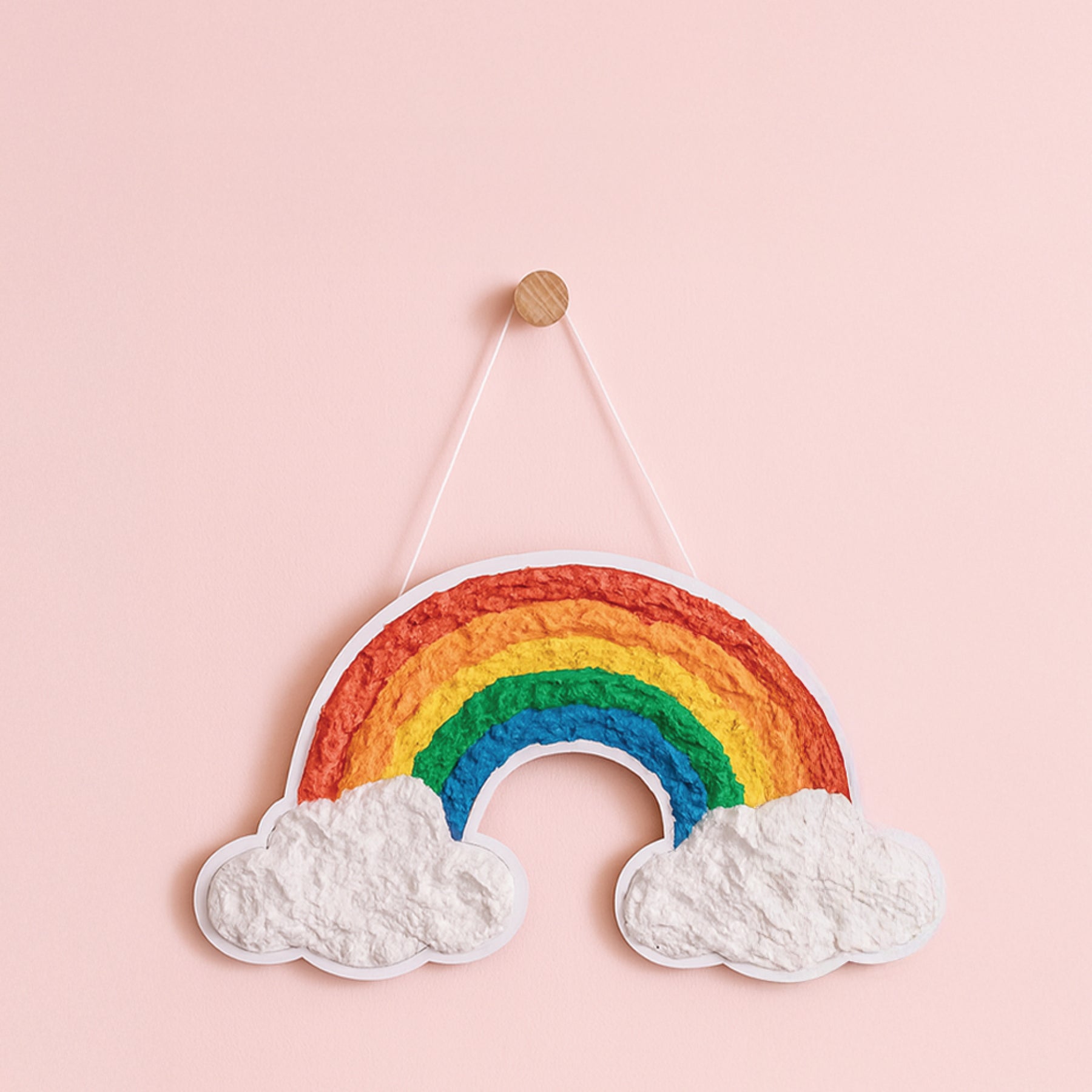Craft a vibrant, textured hanging rainbow using paper pulp and paints — perfect for walls, nurseries, creative corners, or gifting.