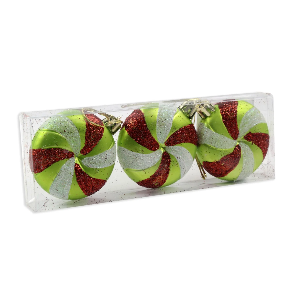Christmas Decorative Hanging - Candy, Green And Red - Green 2.5 X 2.5, 1Box