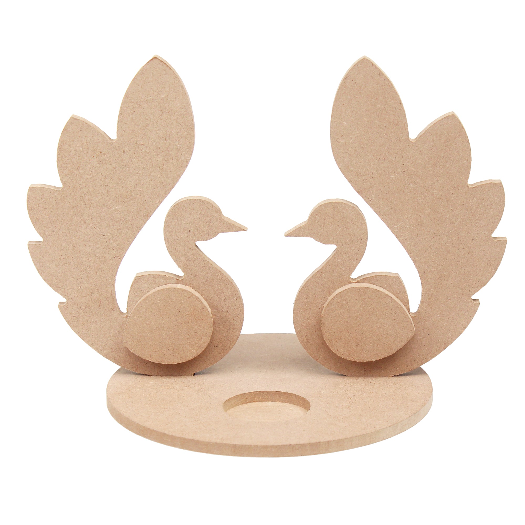 MDF 5.5mm Decorable Candle Holder Peacock Duo W6in x H6.25in