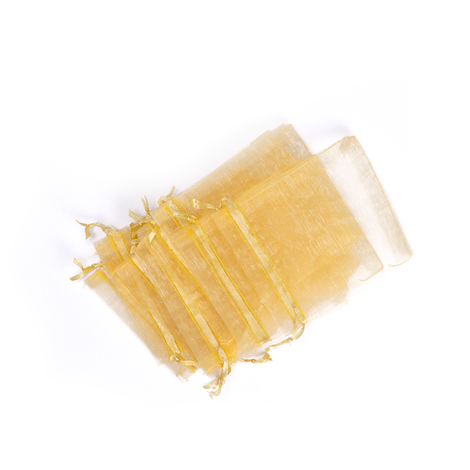 Add a luxurious touch to your gifts and packaging with these elegant golden organza bags. Lightweight, sheer, and shimmering—these bags are the perfect finishing touch for every special occasion.