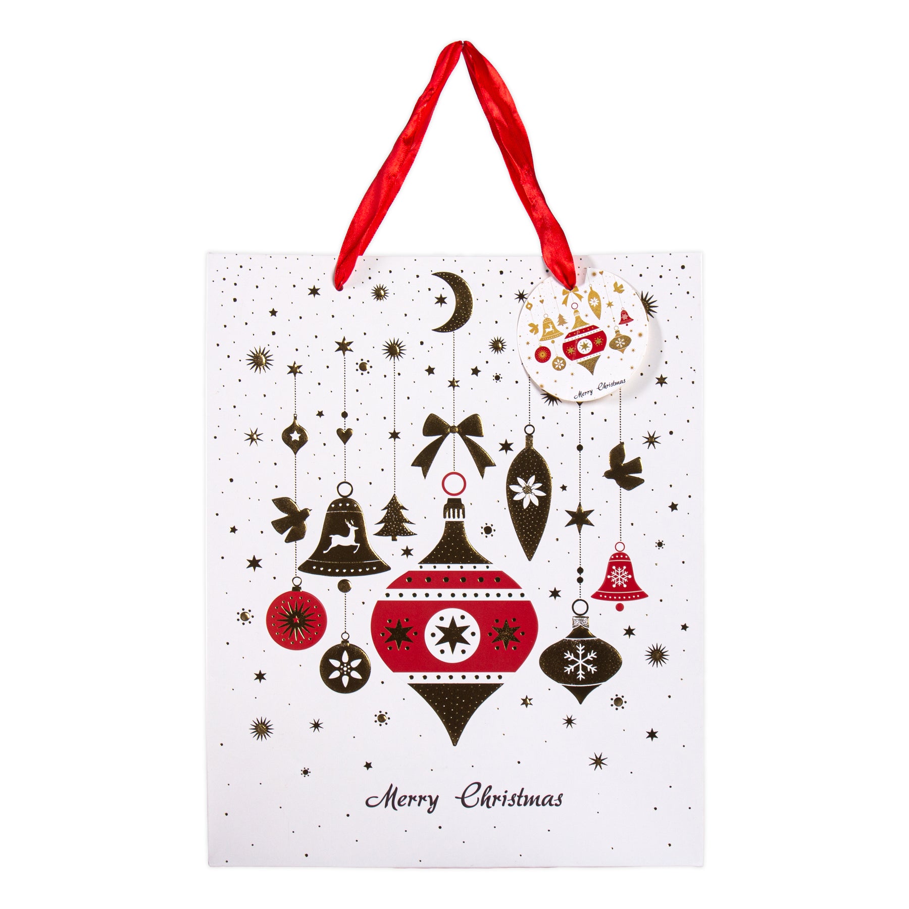 Christmas Gift Bag With Foil Detailing Festive Ornaments 26 X 10 X 32cm 1pc