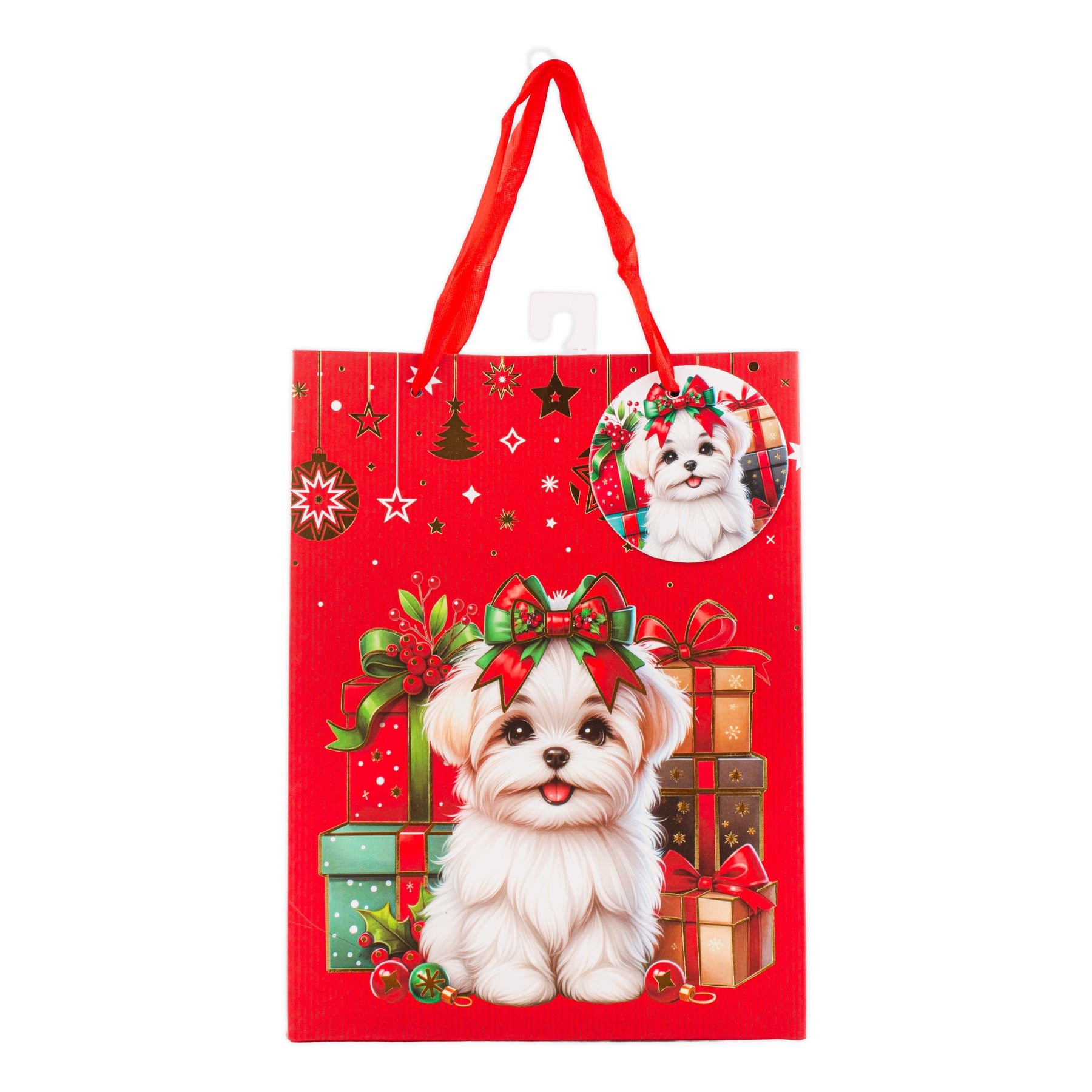 Christmas Pet-Themed Gift Bag – Foil Accents & Matte Finish