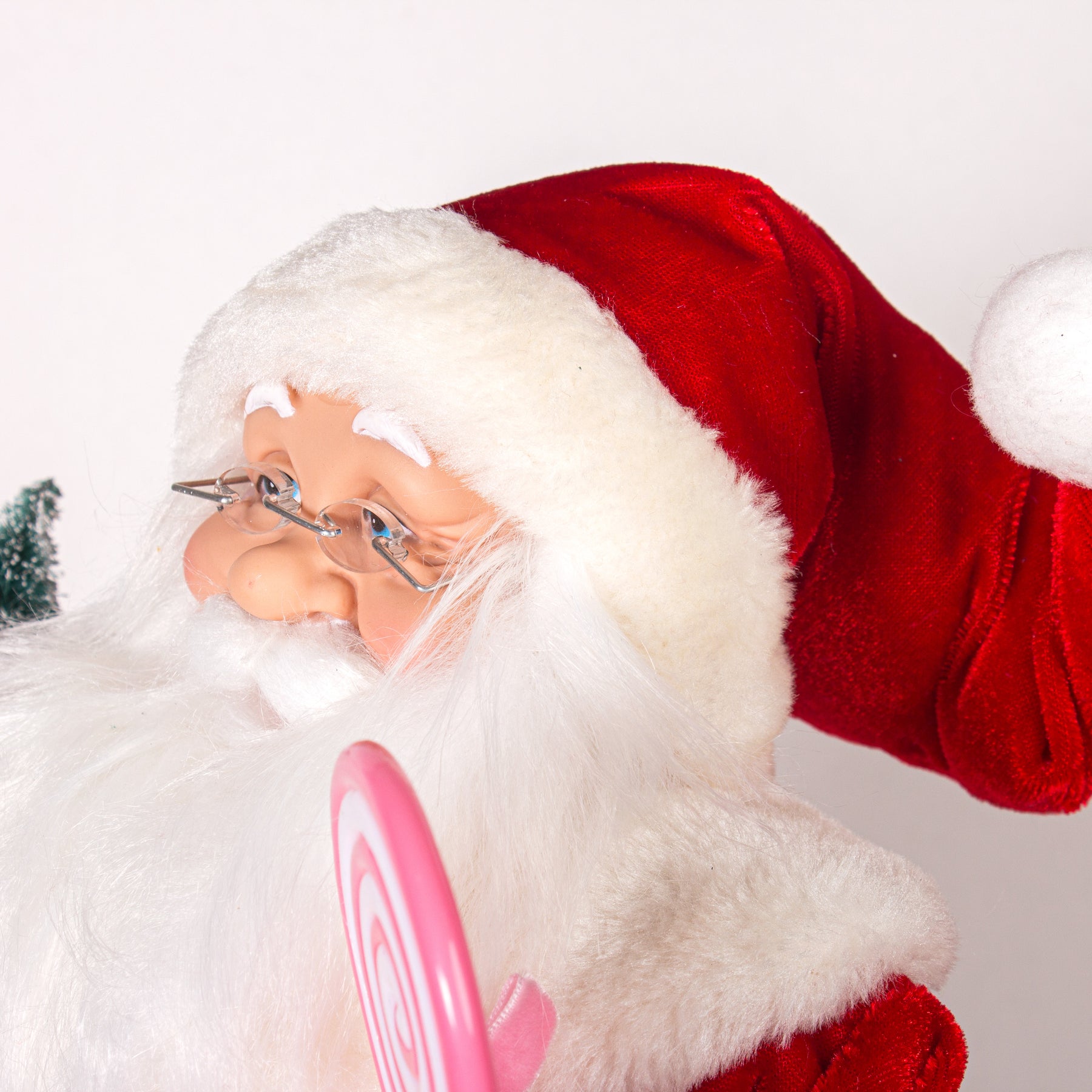 Bring charm and festive cheer to your space with this delightful standing Santa Claus figurine. Dressed in a pretty pink outfit and holding a Christmas tree, gift box, and lollipop, it’s perfect for decorating under the tree, on tables, mantles, or shelves.