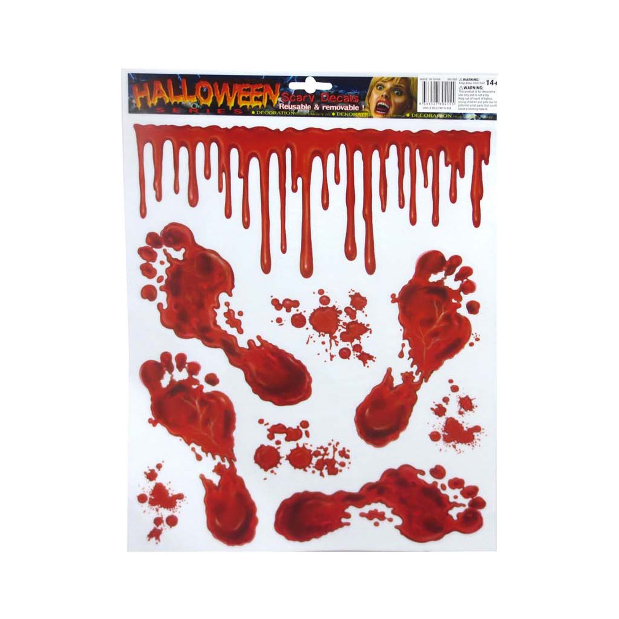 Bloody Window Cling Scary Decals Reusable & Removable Sticker