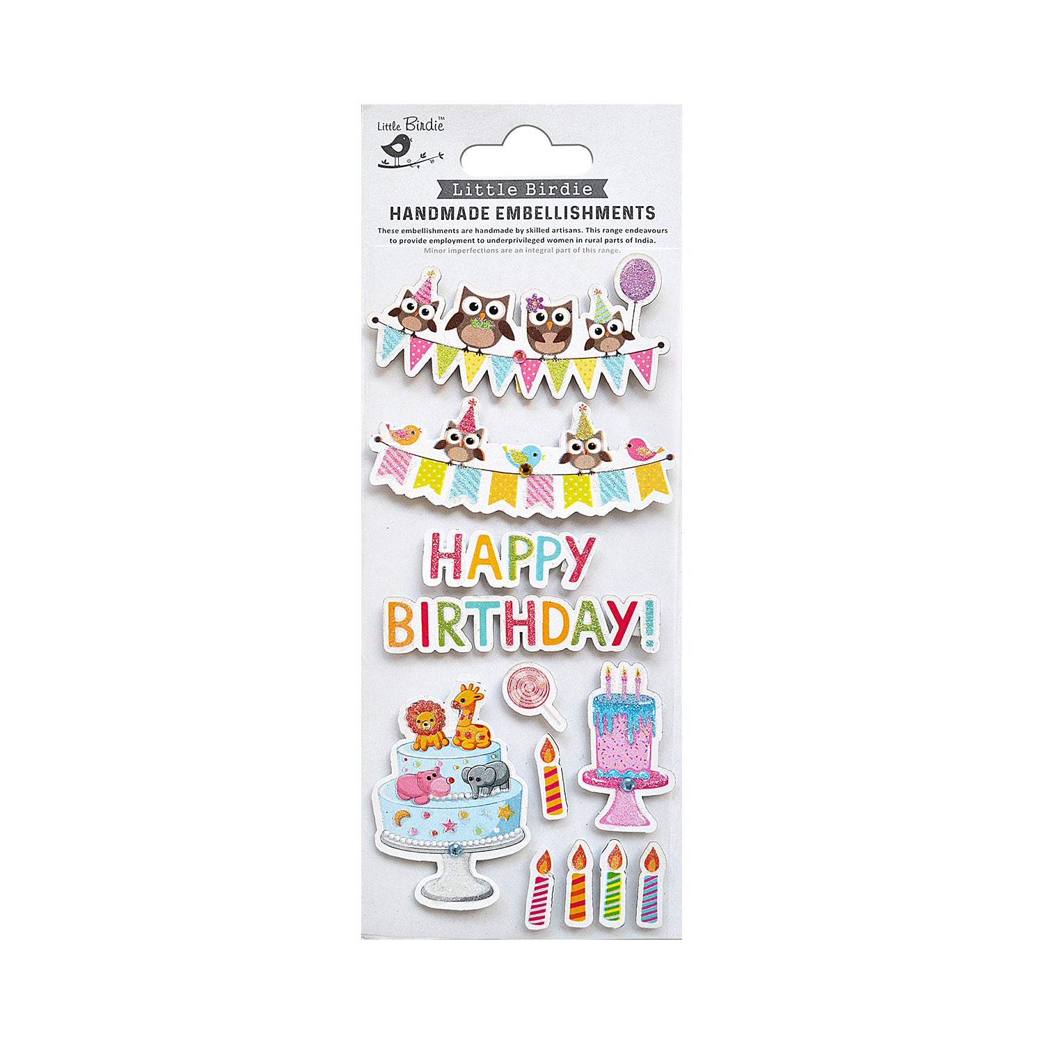 Stickers 3D Glitter Birthday Celebration 12pc