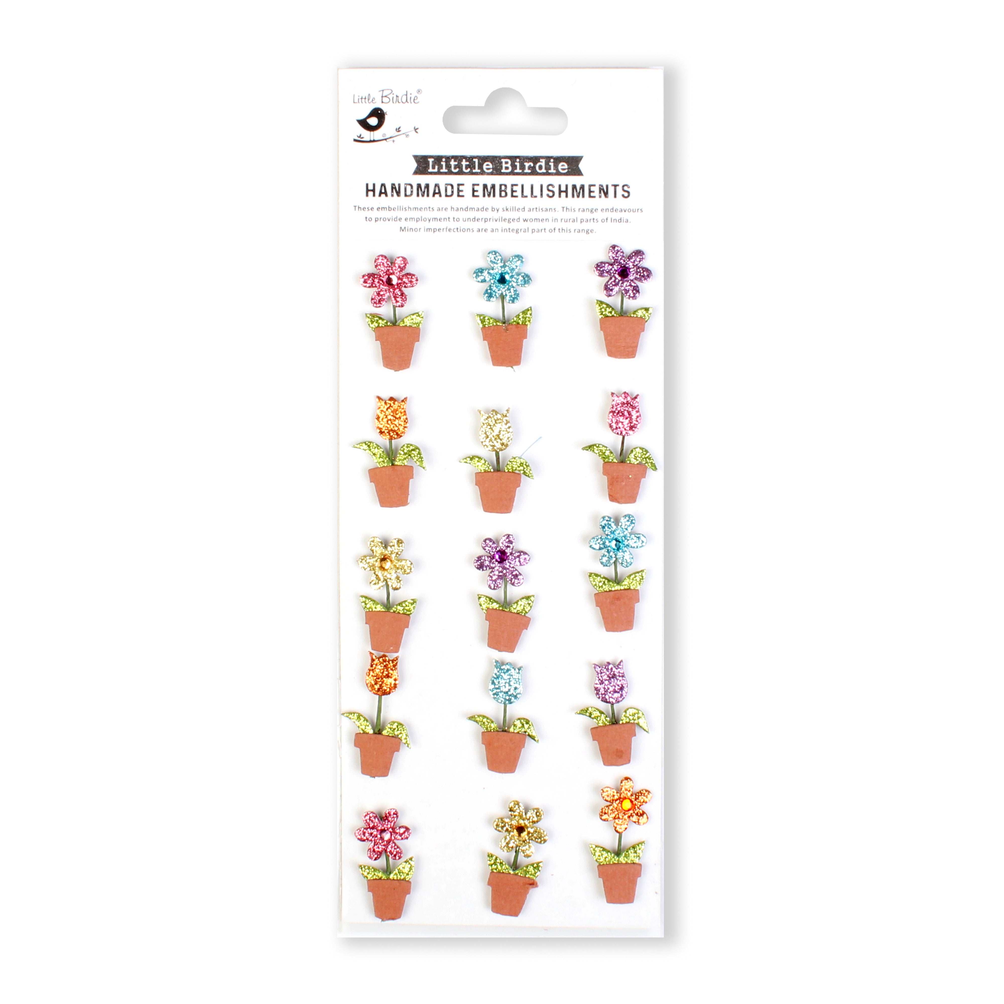- Adhere these colourful Self-adhesive Printed Blossom embellishments to add elegance to your Cards, Scrapbook layouts, Albums, Photo Frames, Gift boxes and more. Add these with our other coordinating mini embellishments for better visual interest.