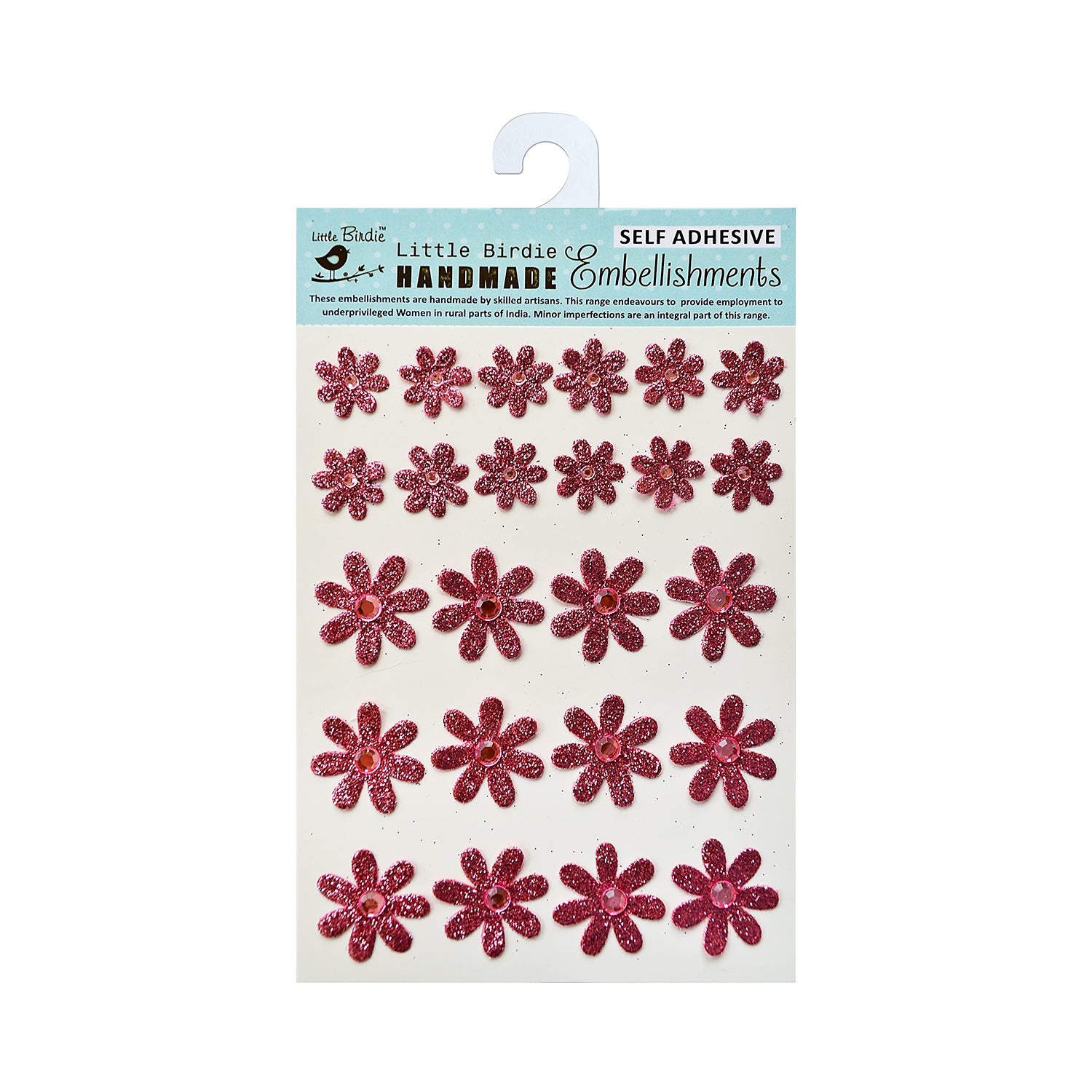 Handmade Emblishment Glitter Pearl Florettes Pink 24pc