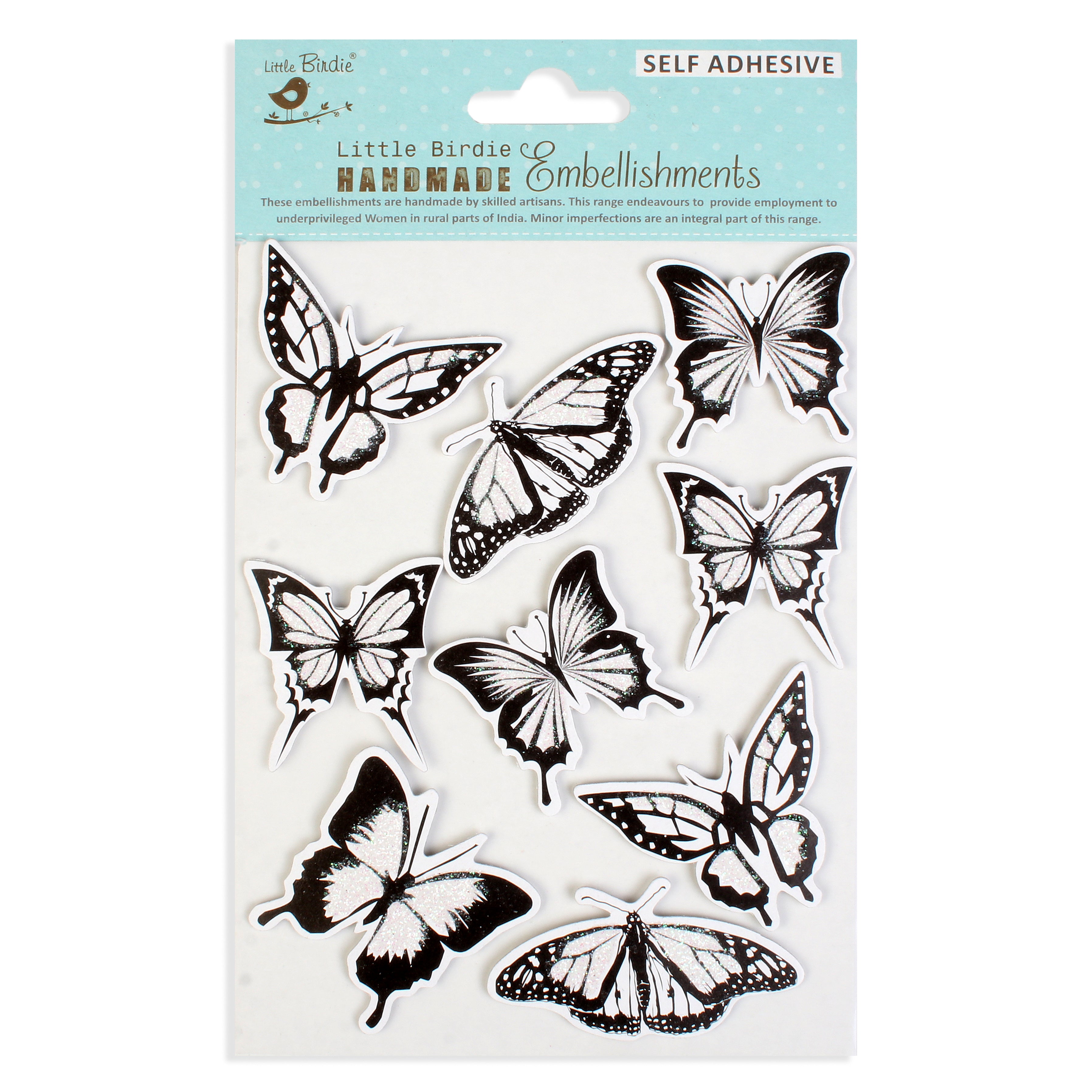 - Adhere these colourful Self-adhesive Printed 3D Butterfly embellishments to add elegance to your Cards, Scrapbook layouts, Albums, Photo Frames, Gift boxes and more. Add these with our other coordinating mini embellishments for better visual interest.