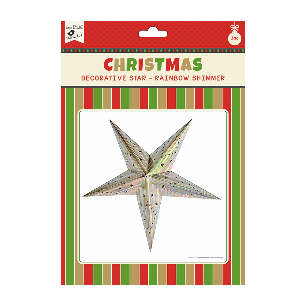 Little Birdie Christmas Decorative Star - Rainbow Shimmer 1pc 48cm X 48cm (Approx) Ribbon 50cm