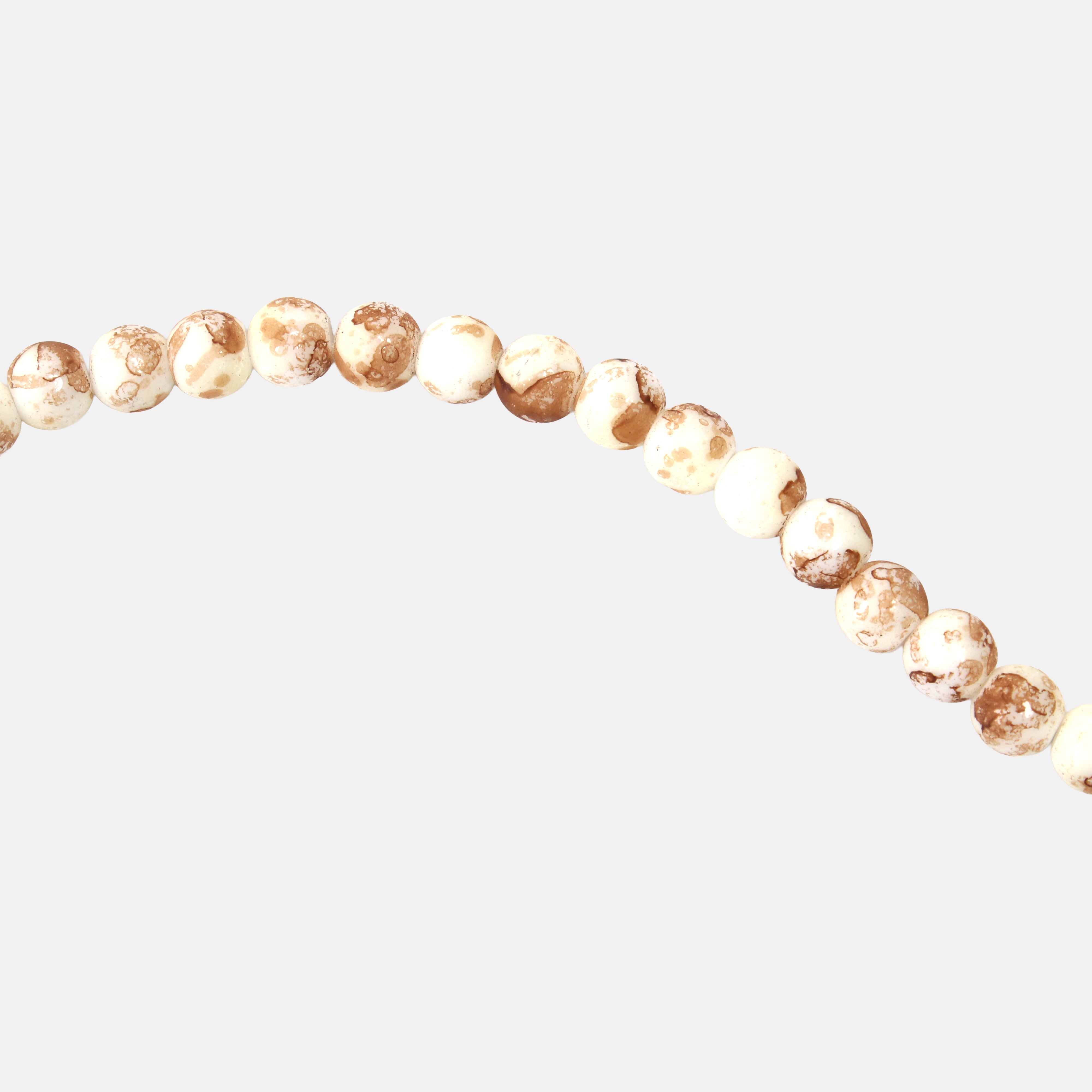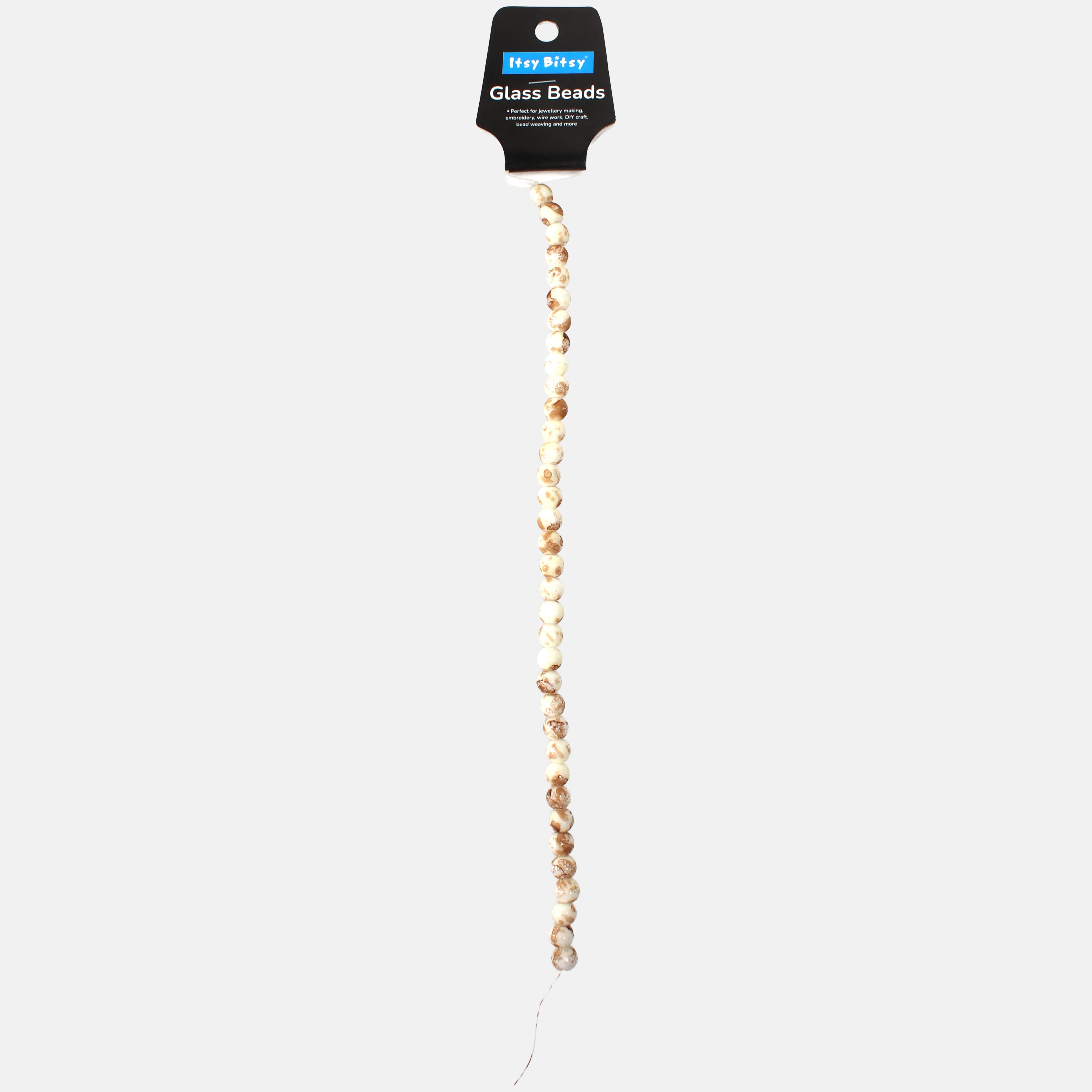 Glass Bead Round Dual Tone White & Brown 8mm 35beads 1string