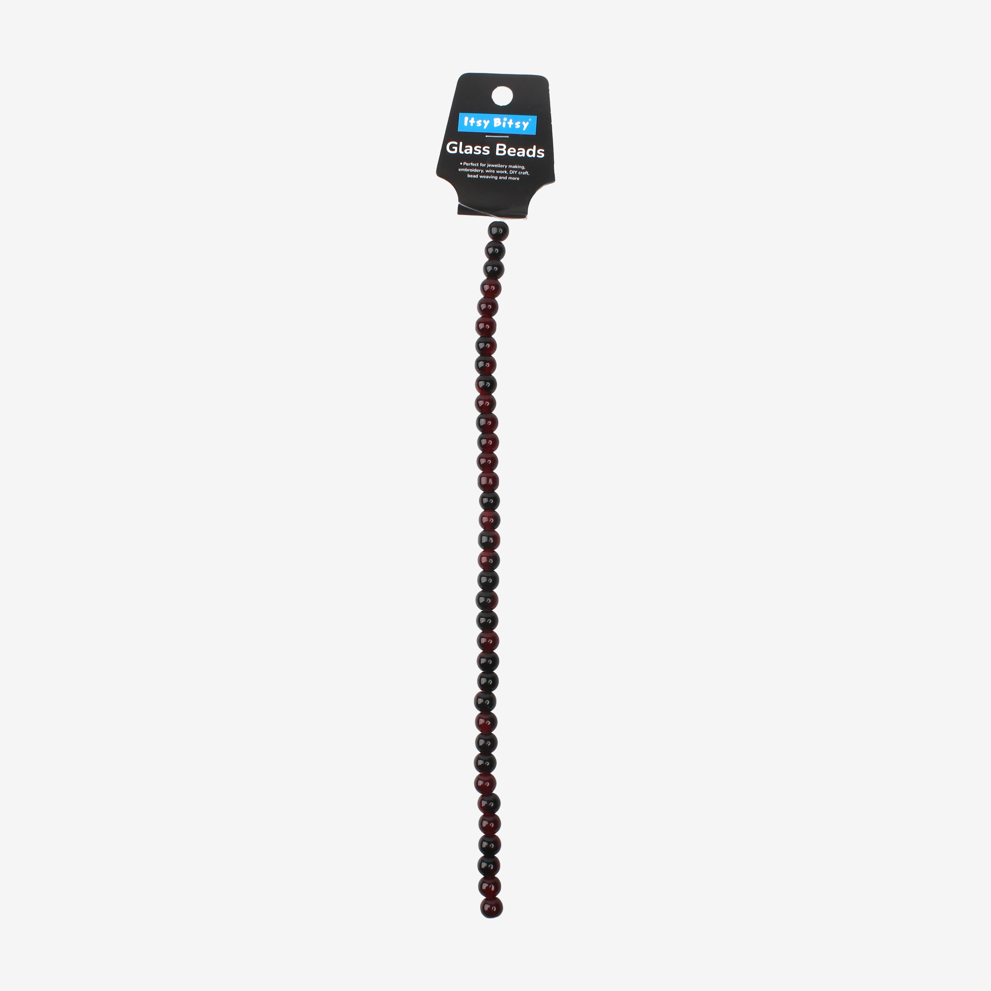 Glass Bead Round Dual Tone Maroon & Black 8mm 35beads 1string