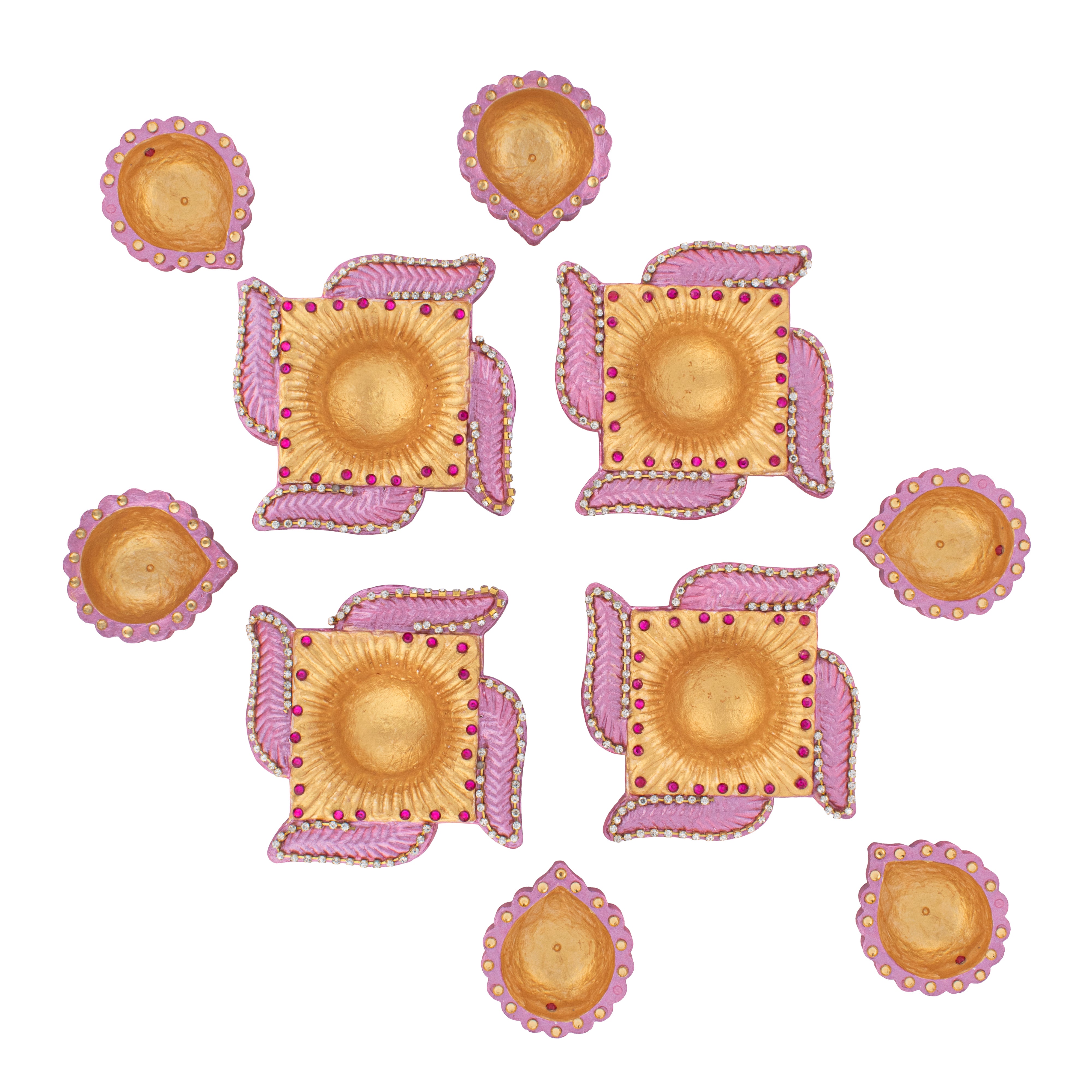 Decorated Terracotta Diya Assorted Shapes Pastel Pink 10pc